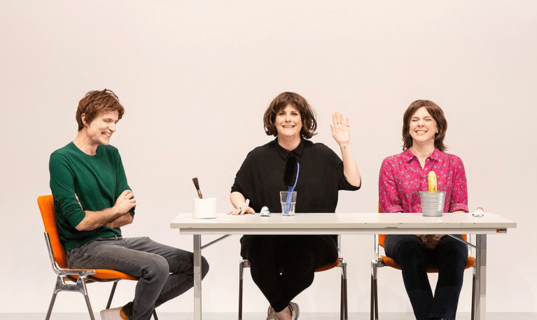 Après « Pièce » où le théâtre amateur était tendrement ausculté, le trio magnifique de la 2bcompany explore les multiples manières de produire ensemble entre amis ou pour un public réduit. A la radio ou sur une scène, face à des élèves ou des amis, ces formes sincères de minis spectacles vivants pastichent le monde du spectacle avec une créativité quelquefois maladroite mais toujours joyeuse et vécues avec authenticité.