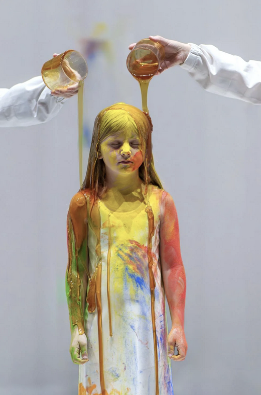 Le final est absolument renversant. Une oeuvre picturale se déploie, évoquant celles d’Anselm Kiefer. Le jeune soprano, Eugen Vonder Mühll, chante a capella, puis d’un geste, demande le silence dans la salle, où le bébé seul, calme et serein, est posé dans un couffin au centre de la scène. Inoubliable!