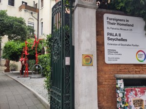 Bon, durant notre déambulation, nous réalisons que cette exposition est un mélange, certes foisonnant, mais sans thème collectif et débordant largement du cadre européen. Elle s’intitule Structures personnelles et s’étend au Palazzo Bembo et au Giardini della Marinaressa, un parc public, juste avant le site des Giardini de la Biennale.
