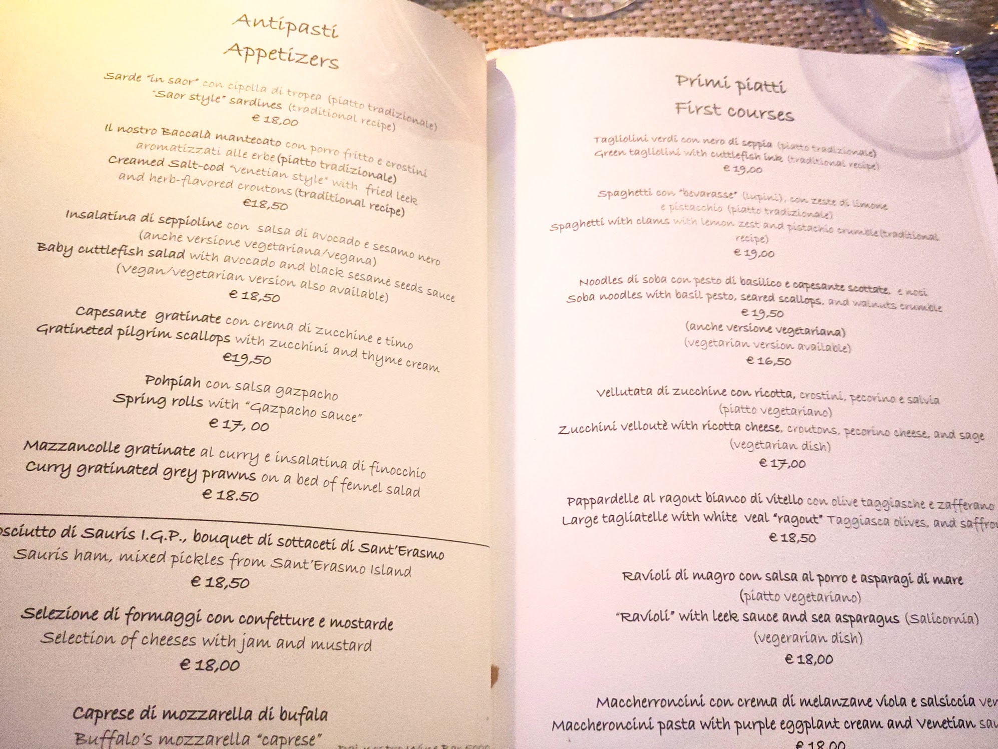 Pour couronner cette dolce vita par des saveurs plus terre à terre, même près des canaux vénitiens, deux adresses de restaurants que nous avons apprécié : Luna Sentada (Castello 5018), bord de canal tranquille, cuisine soignée, ingrédients locaux, accueil sympathique et options végétariennes.