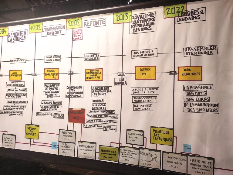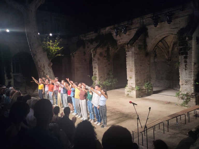 Ce sont les archives du festival d’Avignon qui servent de matière à la production de la metteuse en scène et chorégraphe Fanny de Chaillé (site), dont le spectacle est interprété par les élèves de La Manufacture-Haute école des arts de la scène de Lausanne.