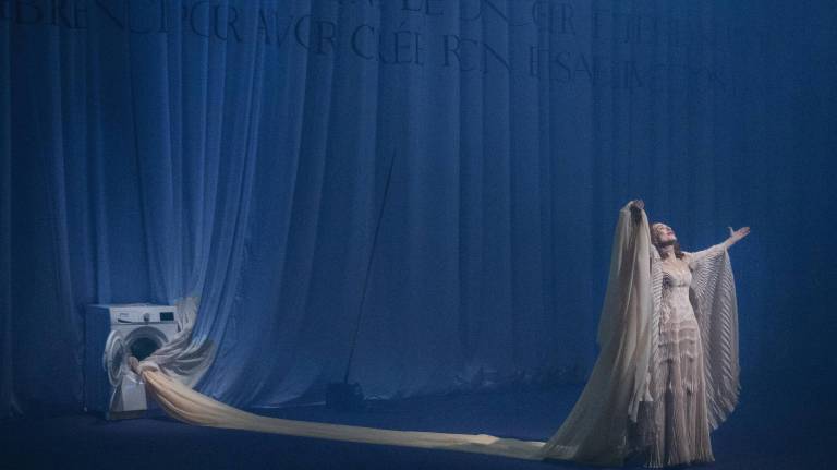 Un tissu gaze sépare la scène du public, enfermant l’actrice et le personnage dans un lieu clos, celui de l’esprit? A un moment, elle s’approche de cette gaze, comme si elle voulait se rapprocher de la vie, sortir de son personnage. Ce tissu, qui floute l’action du plateau, contribue à l’ambiance onirique de la pièce. De même, l’incongruité de certaines choses présentes sur scène rappellent l’expérience du rêve et certaines situations absurdes dans lesquelles nous nous trouvons lorsque nous rêvons. Le style incomparable des mises en scènes de Castellucci peut sembler hermétique ou du moins énigmatique. Pas plus que nos rêves les plus fantasques, ceux qui tentent de guider notre esprit assoupi.