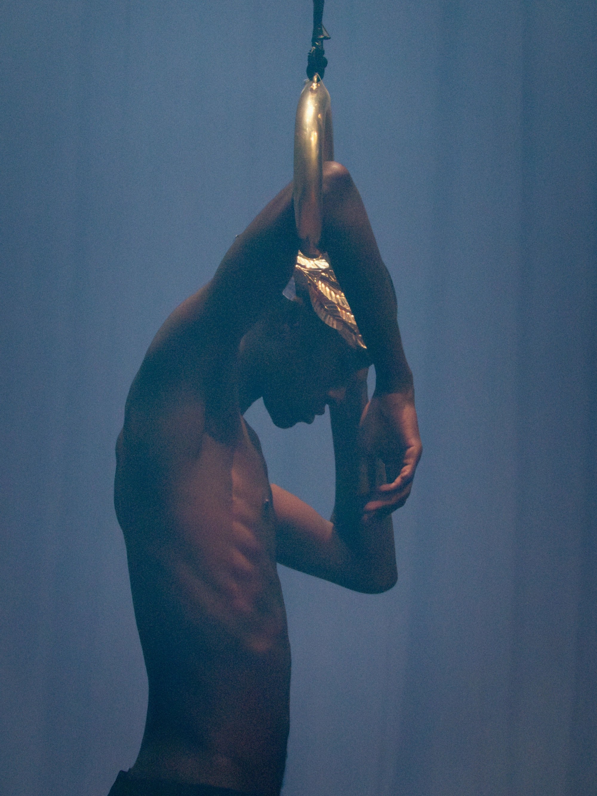 Un épisode esthétique fascinant est le moment où ces douze hommes sculptent différentes scènes si éphémères que l’on n’a pas le temps de les décrypter. Le couronnement de Titus se prépare, les sénateurs savourent-ils l’avant-goût du pouvoir? Derrière le rideau de fond de scène, ils s’activent depuis le début en de fantomatiques silhouettes mouvantes. Les représentants du peuple, à la botte du pouvoir et de l’or, seront mis à nu par l’empereur. On avait déjà goûté à ces chorégraphies éphémères dans Bros (ICI), des scènes fascinantes marquant l’esprit comme des images subliminales.