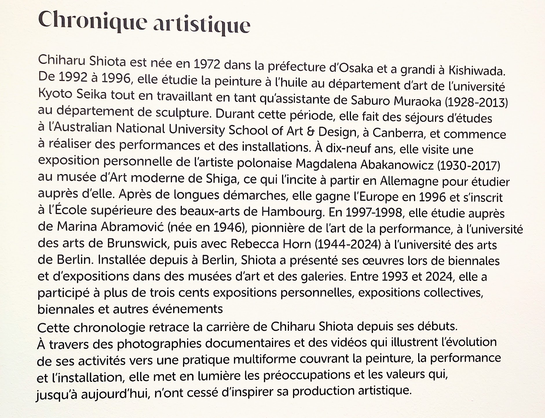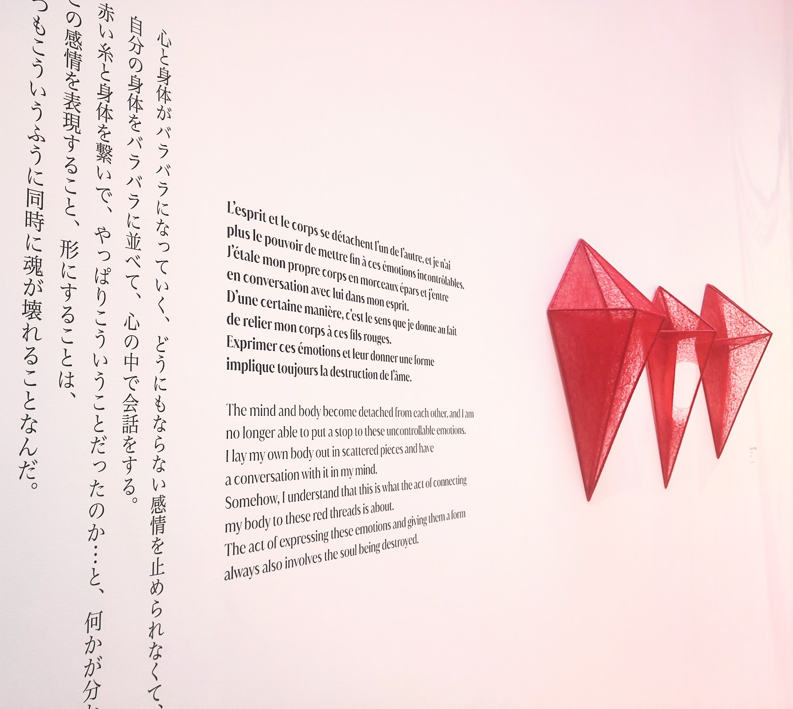 Un peu décevant, qu’il y ait autant de photographies d’oeuvres, mais les installations sont bluffantes. C’est un déplacement aller-retour qu’il faut utiliser comme trajet, et ça aussi est un peu dommage. En revanche, le catalogue est parfait, ni trop grand, ni trop onéreux. Vous avez jusqu’au 19 mars pour pour vous immerger dans l’oeuvre sensible de Chiharu Shiota.