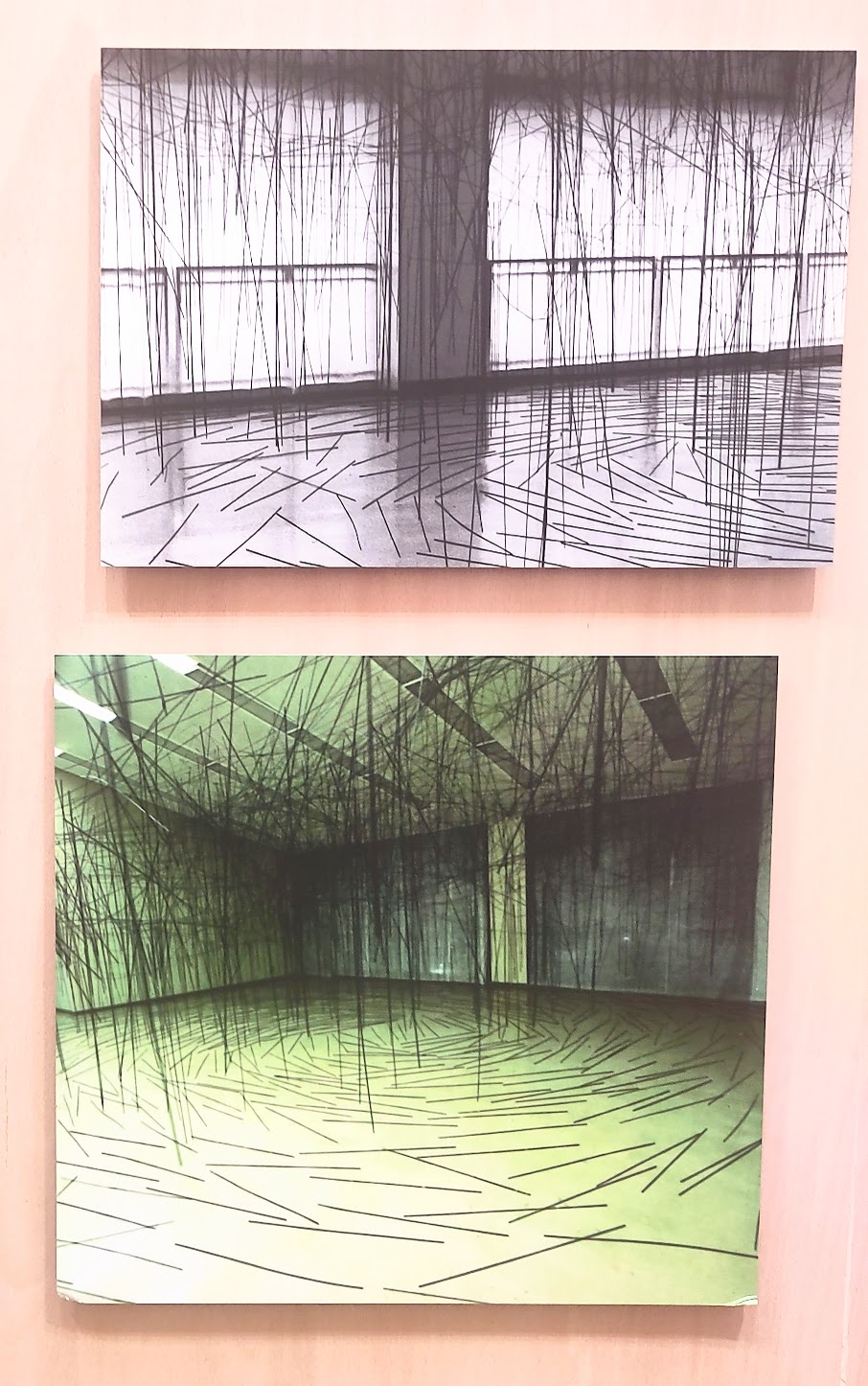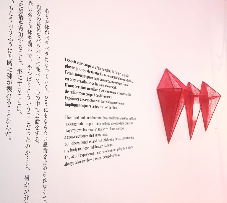 Une exposition très fréquentée (certaines photos s’en ressentent) qui retrace près de trente ans du parcours artistique de l’artiste japonaise Chiharu Shiota. Les installations nécessitent des kilomètres de fils et des semaines de construction. L’artiste dit avoir l’impression de peindre en trois dimensions le miroir de ses sentiments.