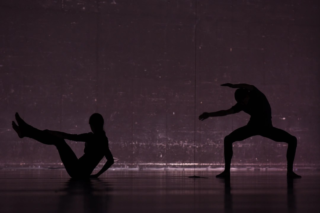 Délaissant l’idée d’un récit concret, les danseuses semblent s’ignorer, ne se synchronisant brièvement qu’après un cataclysme sonore et qu’un trait vertical, lumineux et vibrant, traverse verticalement la scène. Dans un silence total, le binôme se lie alors et compose plusieurs figures, cristallisant quelques instants leurs poses (ce qui induit le public en erreur: ceci n’est pas une fin).