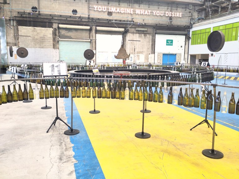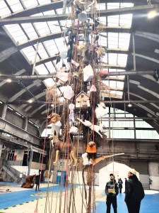 Anciennes usines créées en 1846, cet immense complexe consacré aux chemins de fer est désaffecté en 2019. Les artistes y évoquent « le voyage et le déplacement, la réparation et le soin, la force du collectif et de la contestation ». Gardez vos manteaux! Voilà à quoi cela ressemble en entrant:
