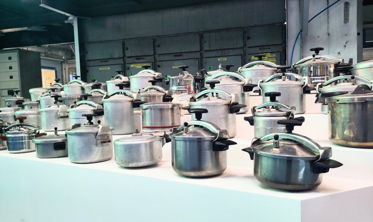 Les Marmites enragées de Pilar Albarracin (1968) sifflent leur colère en harmonie. A ton approche, leurs sifflements s’enclenchent et chantent l’Internationale socialiste! Un matériel domestique qui peut facilement être transformé en bombe… Drôle et féministe, ça existe!