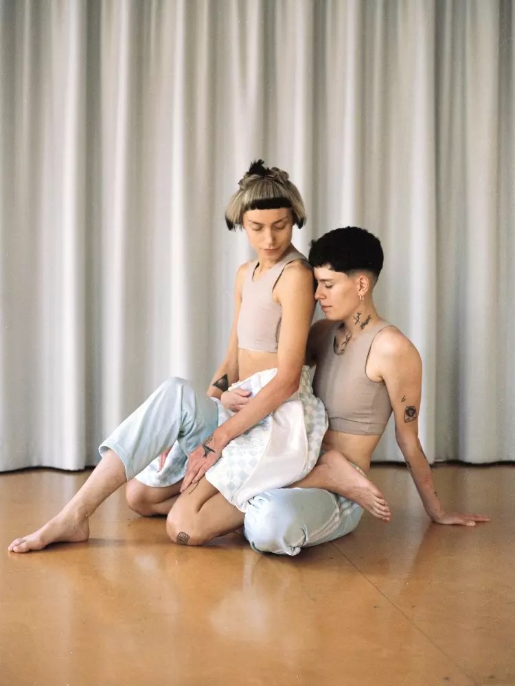 Un duo touchant et sensible, des postures en équilibre, des déplacements de toutes sortes, des appuis complices et des sons susurrés. Entre punk et classique, sons et mouvements se rejoignent. Avec tendresse.