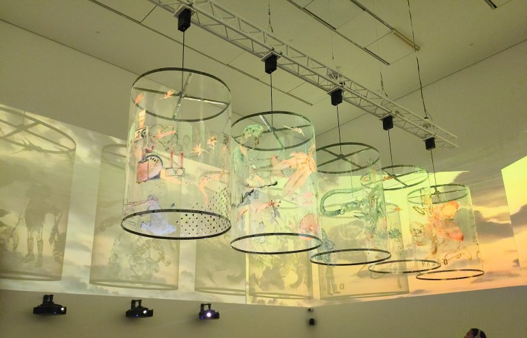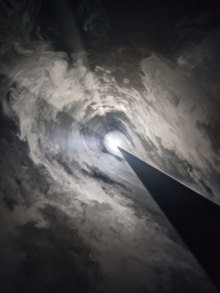 La « lumière solide » D’Anthony McCall est un espace ludique où on peut jouer avec ses installations lumineuses. Je ne m’y arrêterai pas ici.