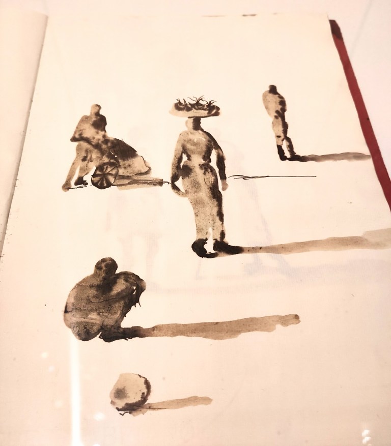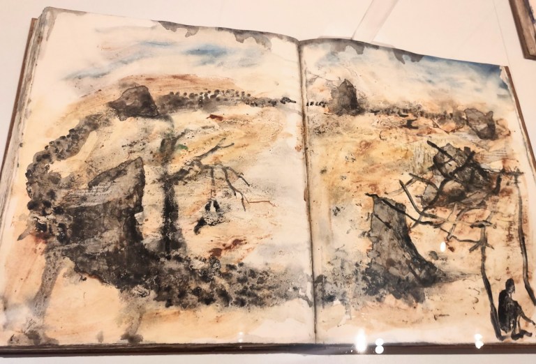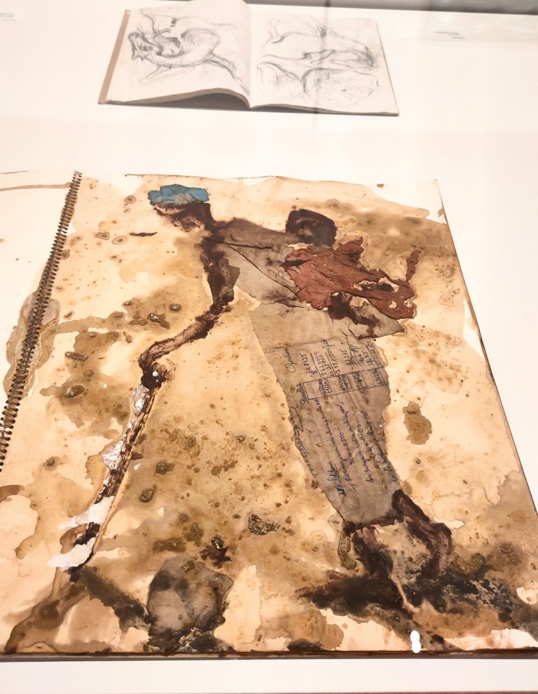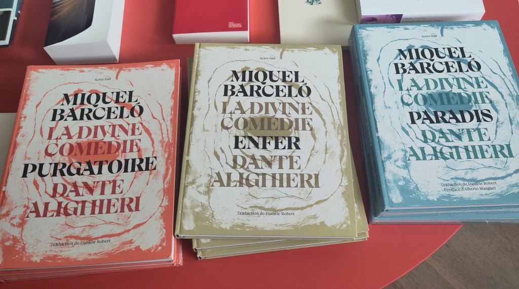 civilisations de l’ONU à Genève. Il est même monté sur scène en 2006 avec Josef Nadj pour un spectacle-performance Paso Doble présenté dans la cour d’honneur du Palais des Papes au Festival d’Avignon. Ce grand voyageur travaille en 2025 à à la réalisation de modèles de tapisseries pour la cathédrale de Notre-Dame de Paris. Très brève biographie, juste pour un avant-goût, vous savez maintenant que Miquel Barcelò est un peintre contemporain majeur. La présence du livre en tant qu’objet, mais aussi source de connaissance, est récurrente dans son oeuvre, d’où l’intérêt de la Fondation Michalski pour l’écriture et la littérature pour le travail de cet artiste. Quelques extraits photographiques de cette petite exposition qui présente