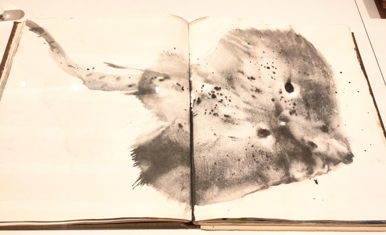 Environ 340 carnets documentent l’oeuvre multiple de Miquel Barcelò. L’exposition en présente quelques-uns sous vitrine, de façon chronologique. Ce qui permet de rendre compte des voyages continuels entrepris par l’artiste.