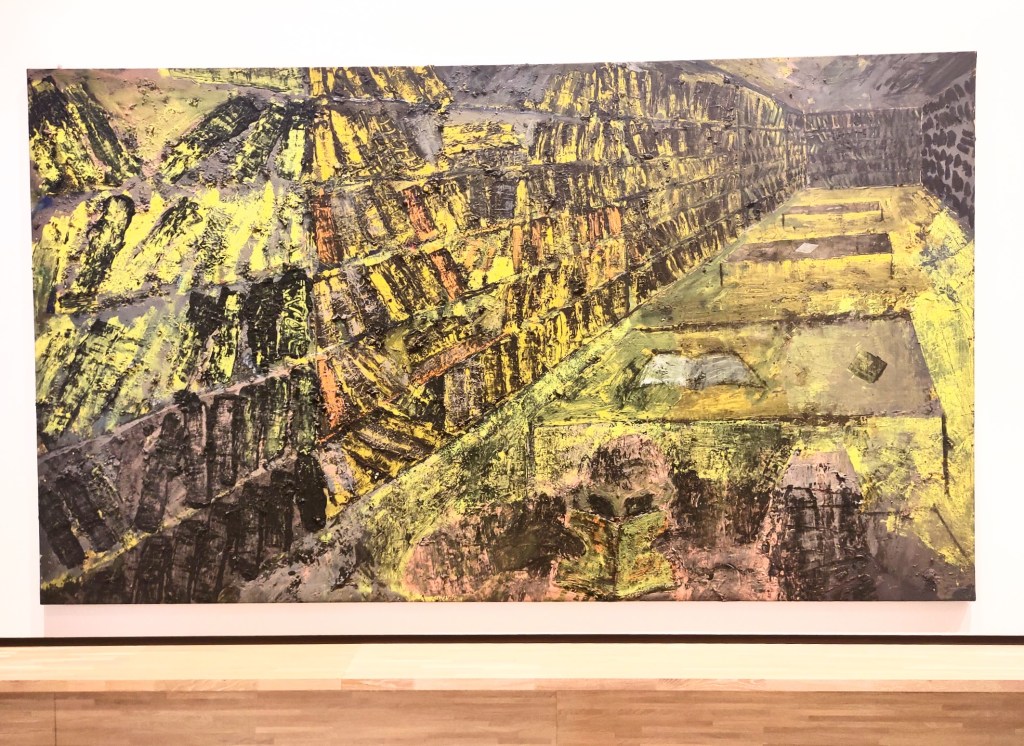 La technique utilisée par l’artiste pour l’autoportrait ci-dessus rappelle une oeuvre de 2016: « L’œuvre monumentale et éphémère Le Grand Verre de terre / Vidre de Meravelles (2016) a été réalisée par Miquel Barceló en février 2016 sur les vitres de la Bibliothèque nationale de France (BnF). Il en reste aujourd’hui des milliers de photos publiées sur internet ou conservées dans des archives privées, des documentaires ainsi qu’un livre d’art paru en 2020 chez La Fábrica où les photographes Jean-Marie del Moral, François Halard et André Morin ont saisi des détails ou reconstitué chacun des panneaux qui composent ce vitrail imposant et fragile. » (voir ici)