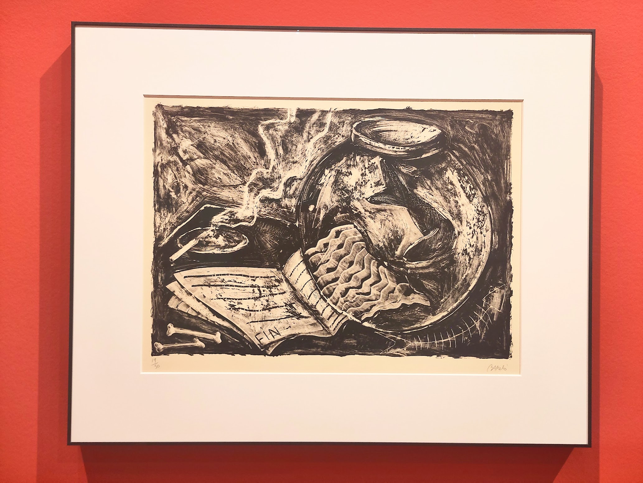 Deux lithographies de 1984 montrent sur l’une, le livre apparenté à un aquarium et des arêtes de poisson, sur l’autre un lecteur embarqué par sa lecture. pour moi, ces deux oeuvres décrivent efficacement à quel point nous sommes plongés au coeur d’une littérature qui nous passionne.