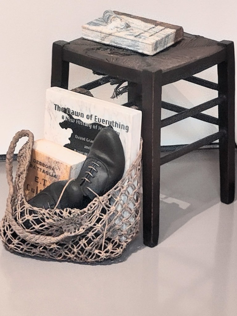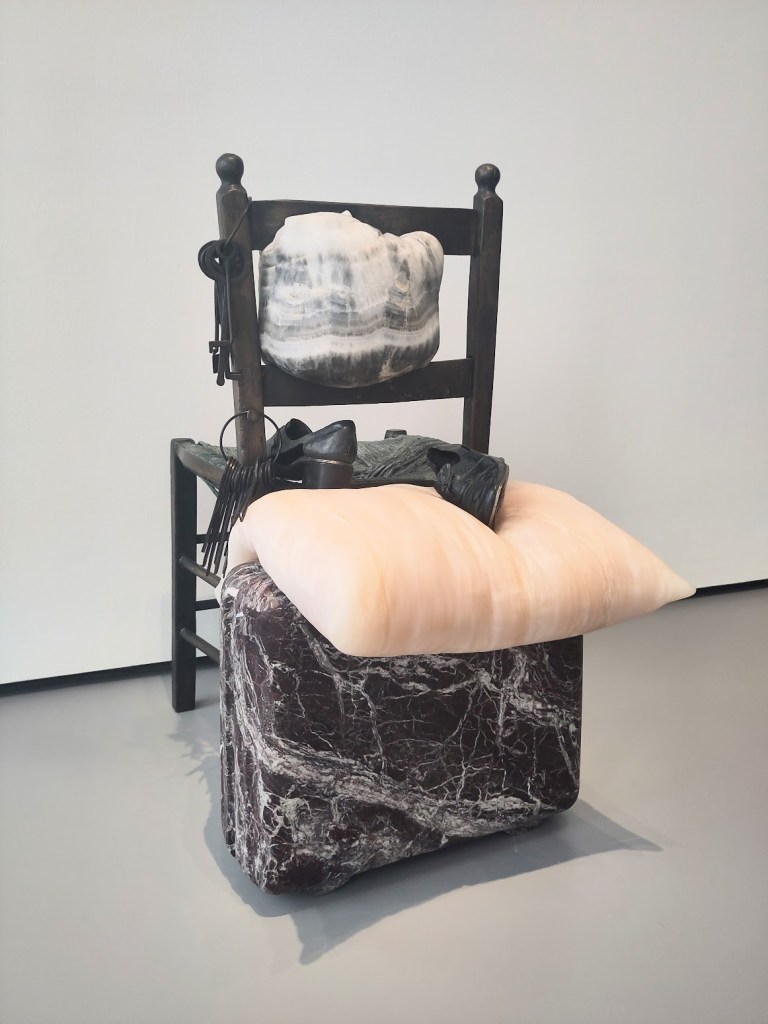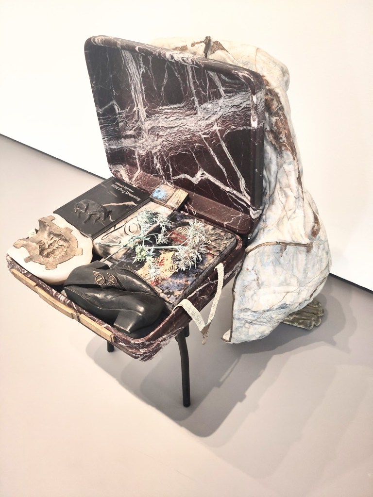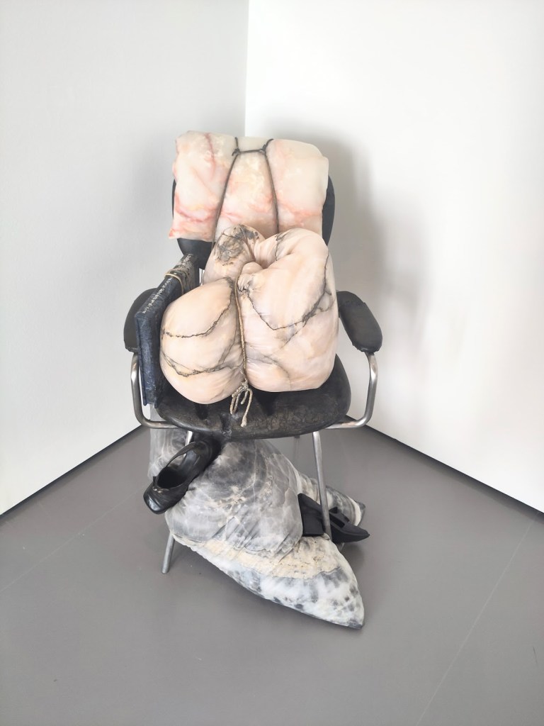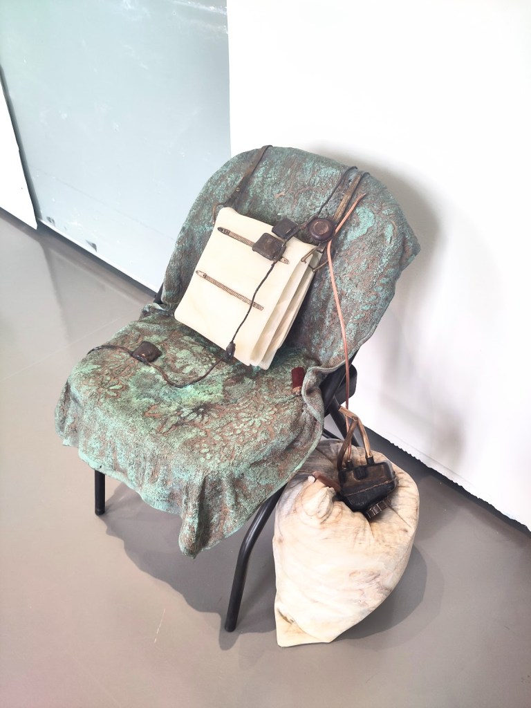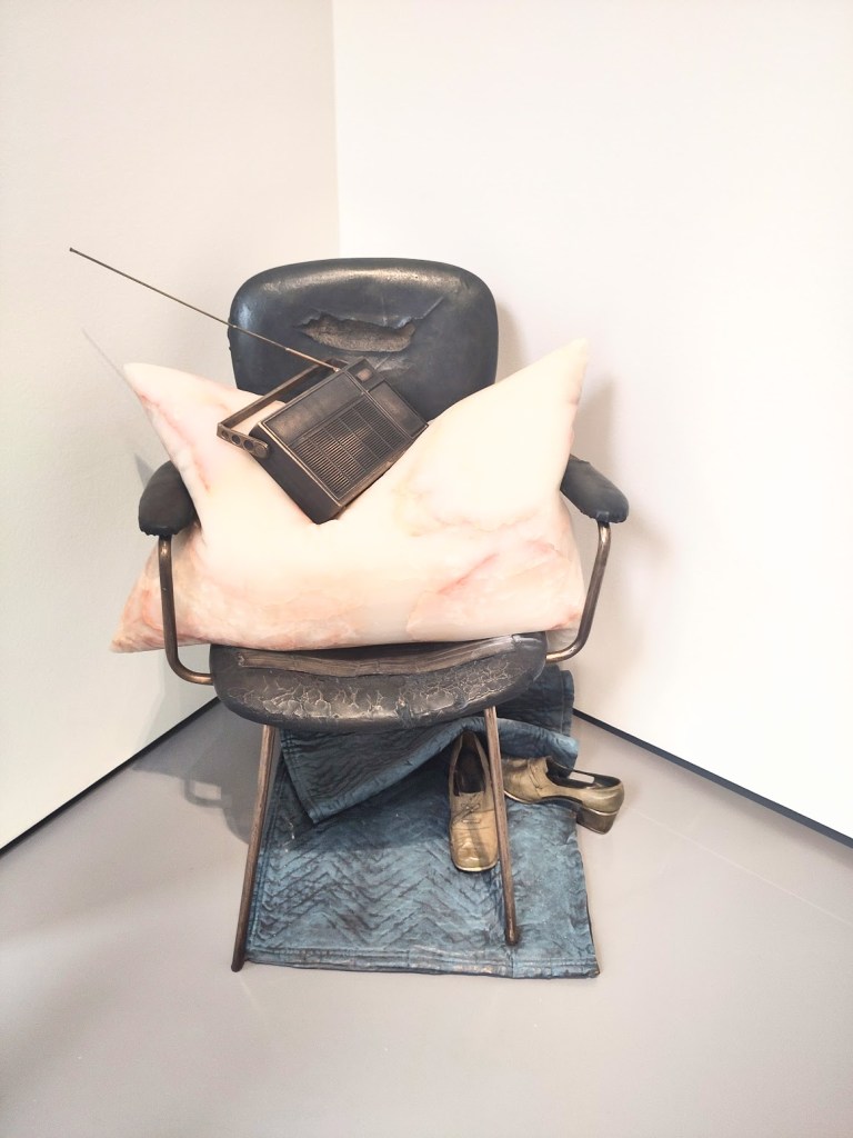 Les oeuvres mystérieuses et fascinantes, de Tatiana Trouvé (1968), son univers qui semble émaner de rêves incongrus, tout cela à découvrir sur les trois étages du palais Grassi dans un accrochage aéré et subtil. Le parcours labyrinthique est jalonné par la série The Gardians. Invisibles, leurs présences matérielles sont signalées par des sièges abandonnés, toutefois habités par des effets personnels: coussins, chaussures, sacs, livres, couvertures, bouquets, radios, clés, autant d’objets personnels liés au repos, aux moments de liberté, à quelque chose de douillet. Et pourtant tout est moulé, sculpté dans le marbre ou le laiton, peint en trompe-l’oeil, onyx et malachite le disputant au bronze, à l’acier ou au cuivre. Les corps absents du gardien ou de la gardienne paraissent plus incarnés que s’ils étaient vraiment là. Iels restent muets mais parlent avec leurs traces. Tatiana Trouvé a occupé cet emploi de gardienne de musée dans ses jeunes années.