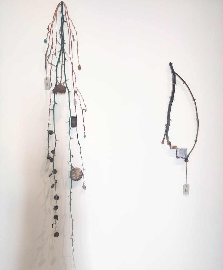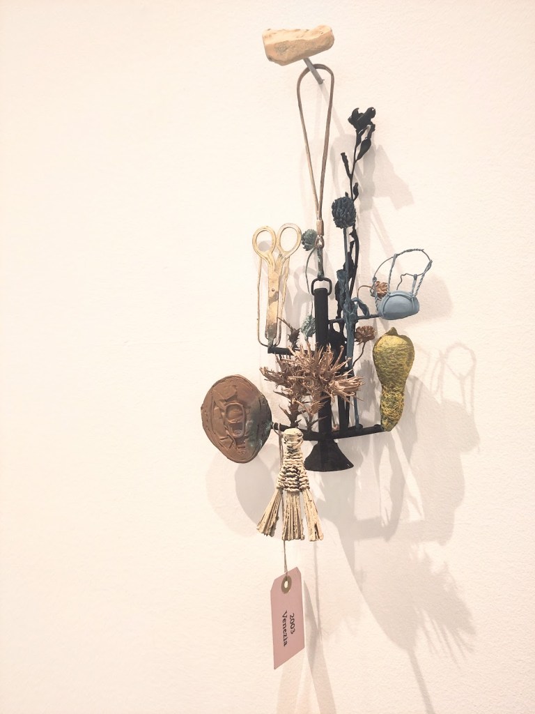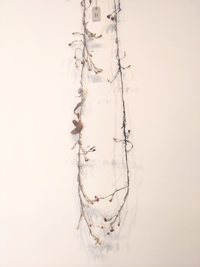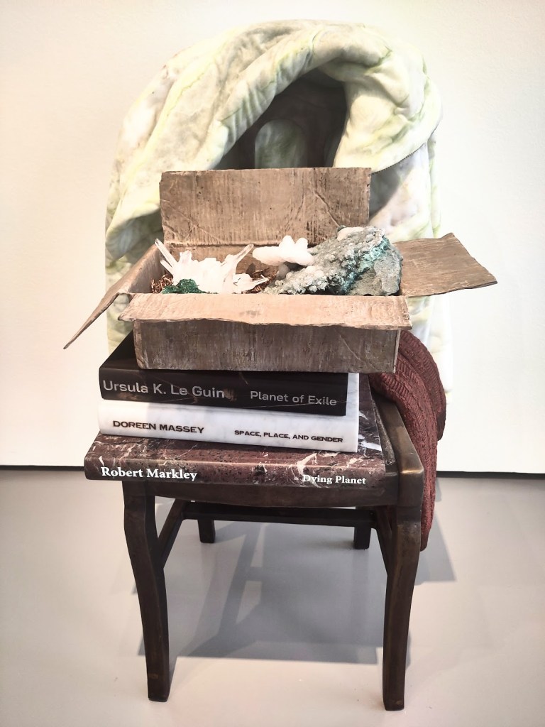 L’univers mystérieux de cette artiste, doublé de ses différentes techniques, laissant la place aux imaginaires de chacun.e, est pour moi une fascination absolue. Je trouve captivant l’esthétique de son travail sur la mémoire et sa conservation, balançant entre psychisme, concept et matérialité. Futur improbable et impressions du passé se mêlent en un présent artistique intense, malgré une première impression de froideur. Au fait, je n’ai pas montré ses bijoux, ceux qu’elle a inventé au fil de ses voyages. Ils affichent un vocabulaire différent et sont émouvants par la fragilité de leur aspect éphémère. Tout à l’inverse des objets de l’exposition, figés dans des matières nobles et quasiment indestructibles.