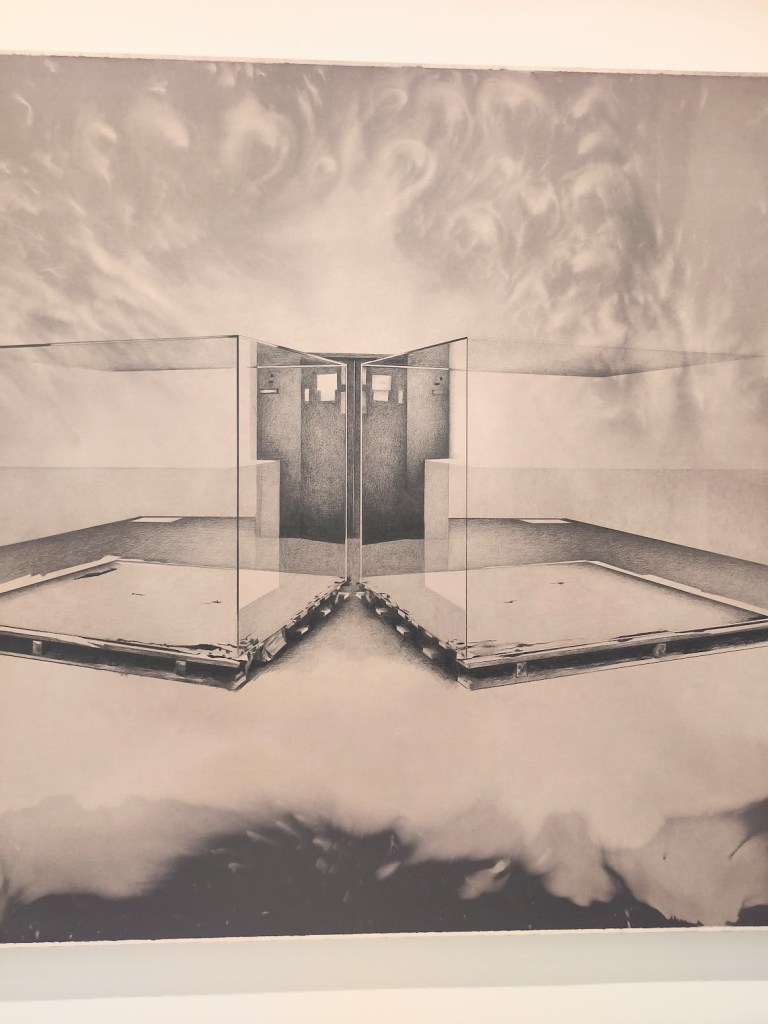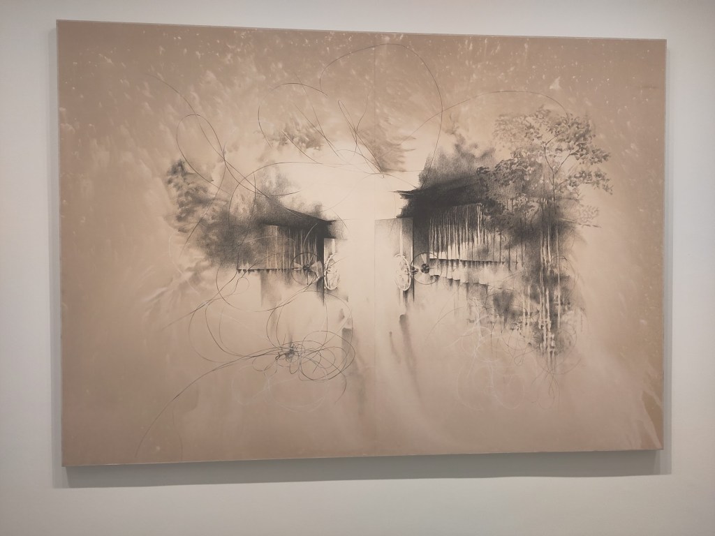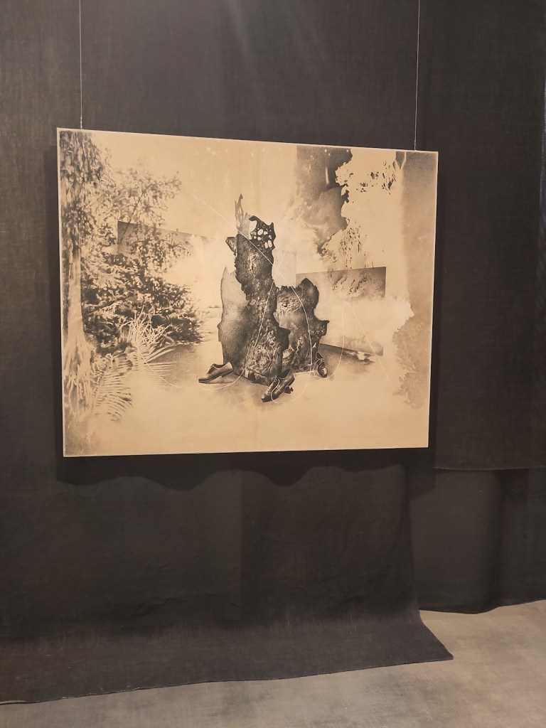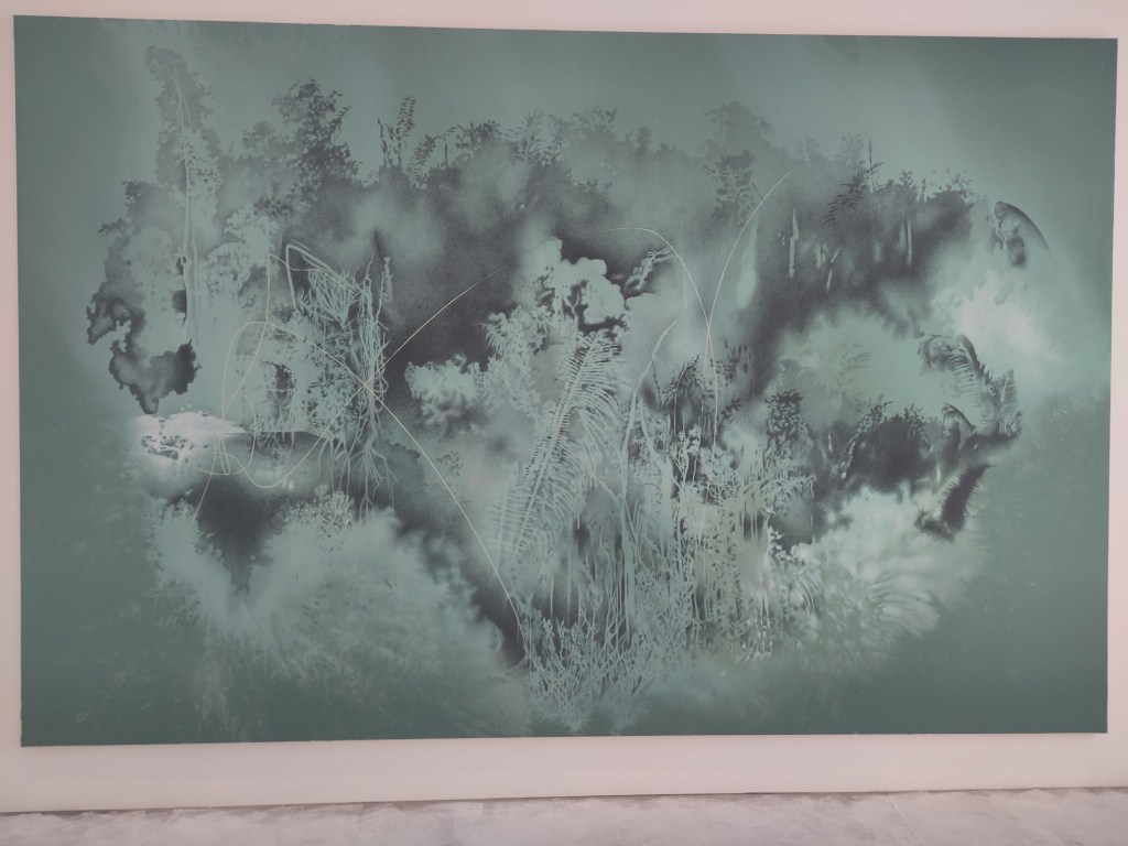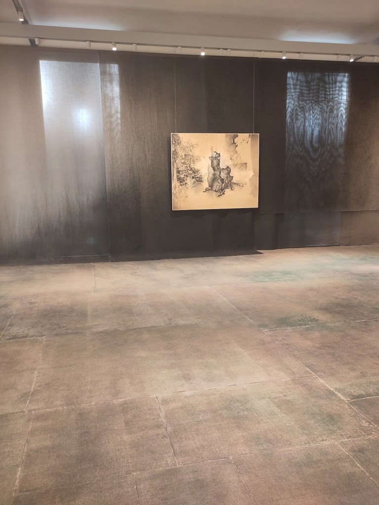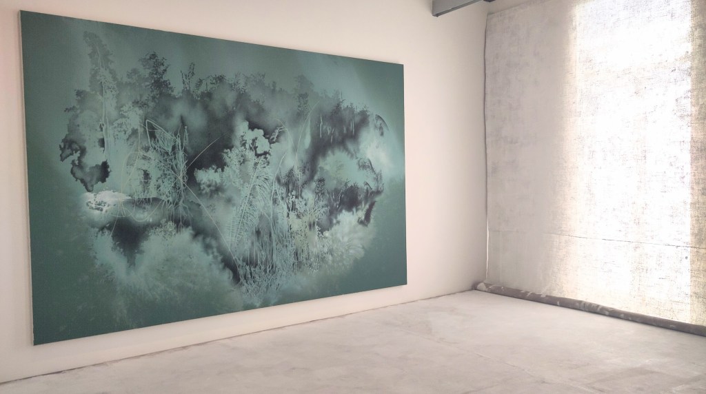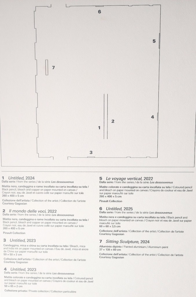 Il faut dire un mot sur l’accrochage, évidemment travaillé avec l’artiste, magnifiquement dressé. La lumière diffuse de certaine salle. Les tentures et les sols quelquefois combinant un écrin pour des toiles monumentales. Les suspensions permettant des rectos/versos époustouflants.