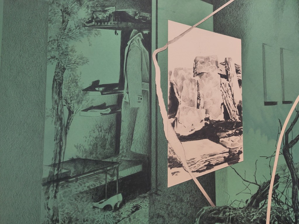 Une installation composée de moulages en plâtre formant des murs est une réminiscence des émeutes ayant eu lieu à Montreuil en 2023 (suite à la mort d’un jeune d’origine maghrébine tué par un policier). L’artiste a voulu enregistrer ces restes, les imprimer comme une mémoire tangible.