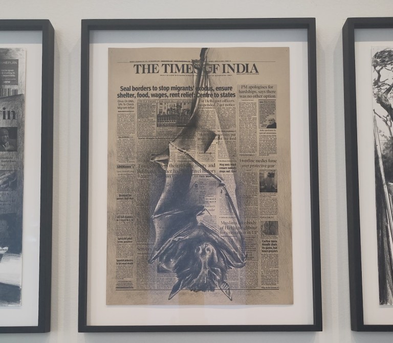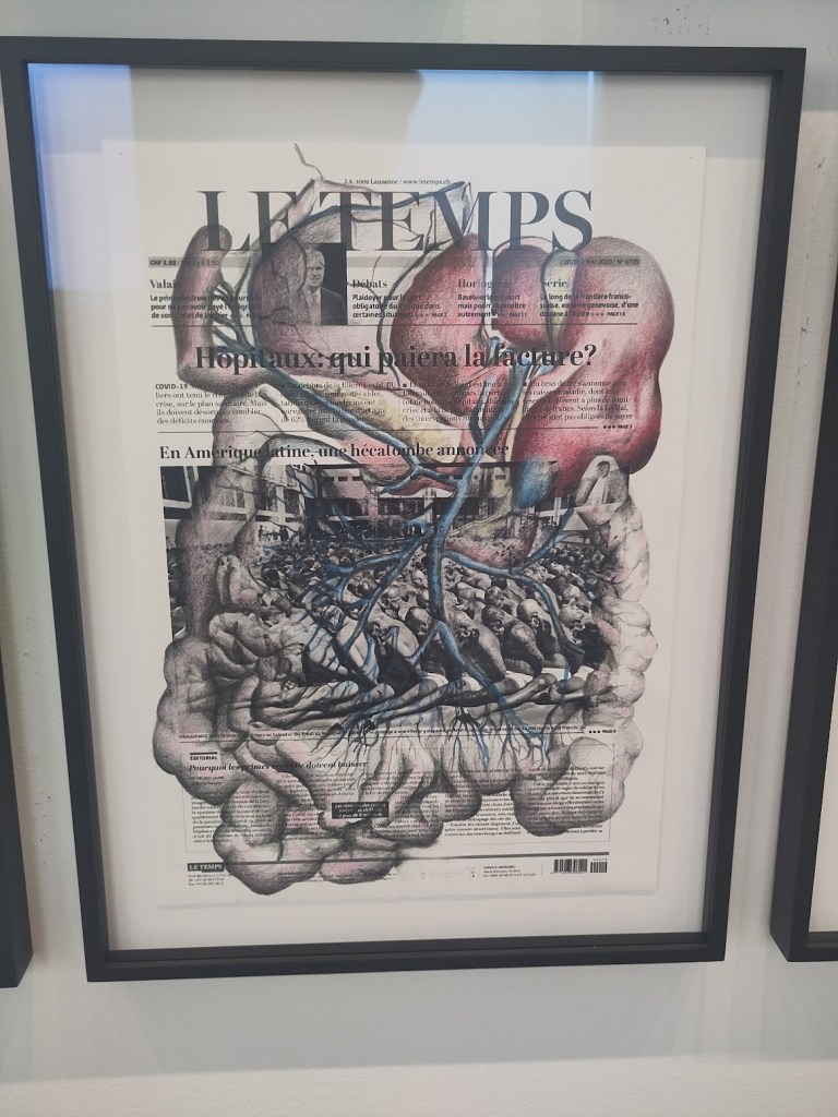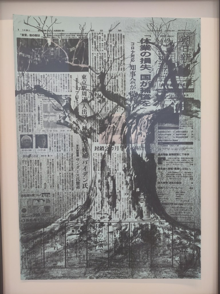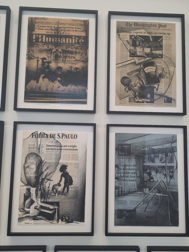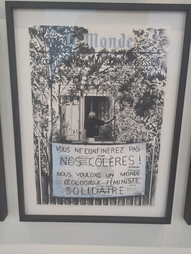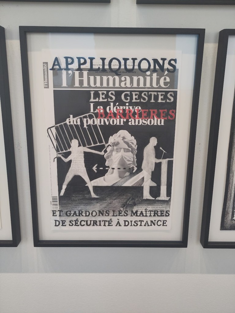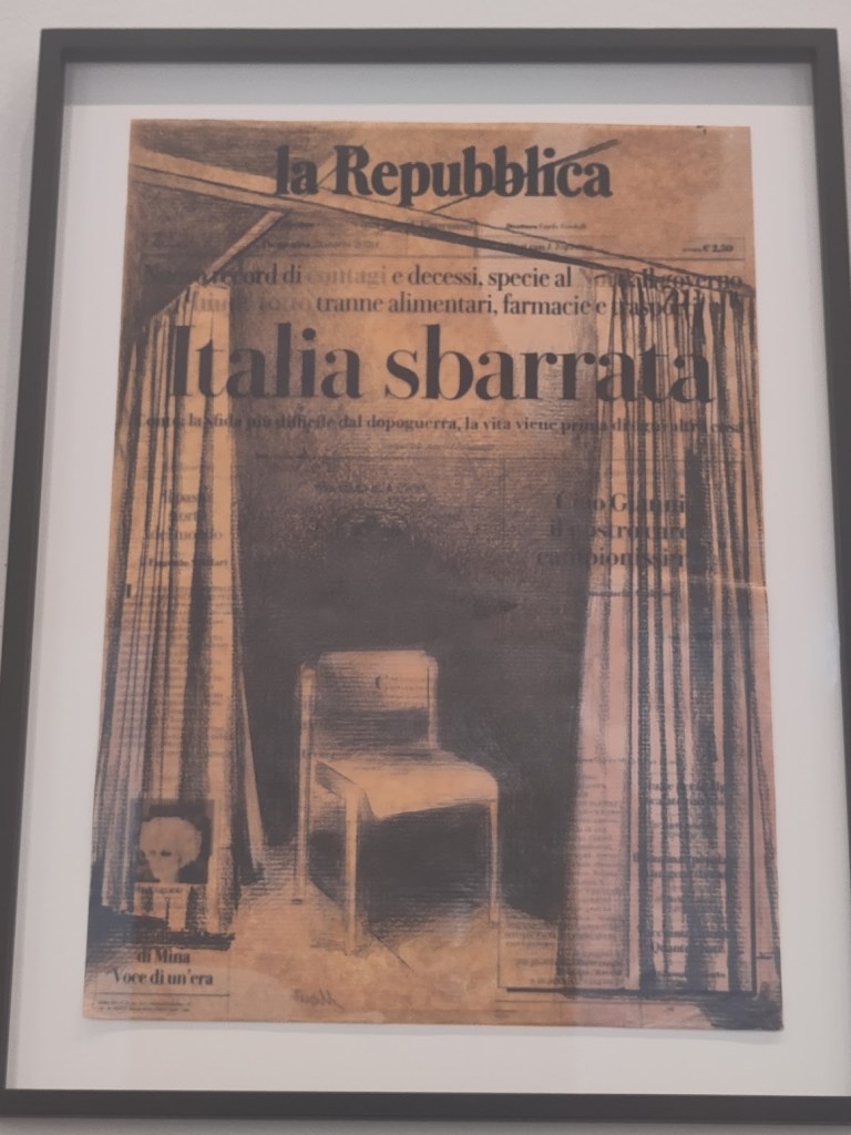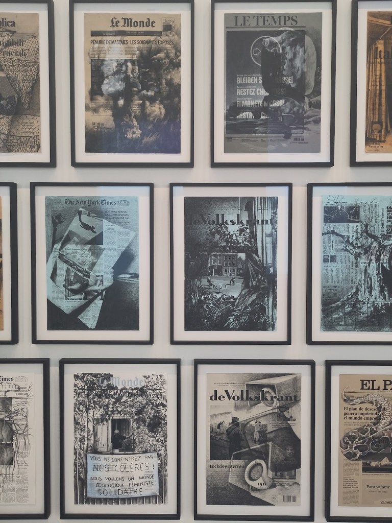 15 mars 2020: le confinement. Tatiana Trouvé se trouve dans son atelier de Montreuil. Elle imprime la Une du journal Libération (« Coronavirus: le jour d’avant ») et y ajoute un dessin. Elle répète ce geste sur un journal différent durant huit semaines, constituant la série de 56 dessins « From Mars to May« .