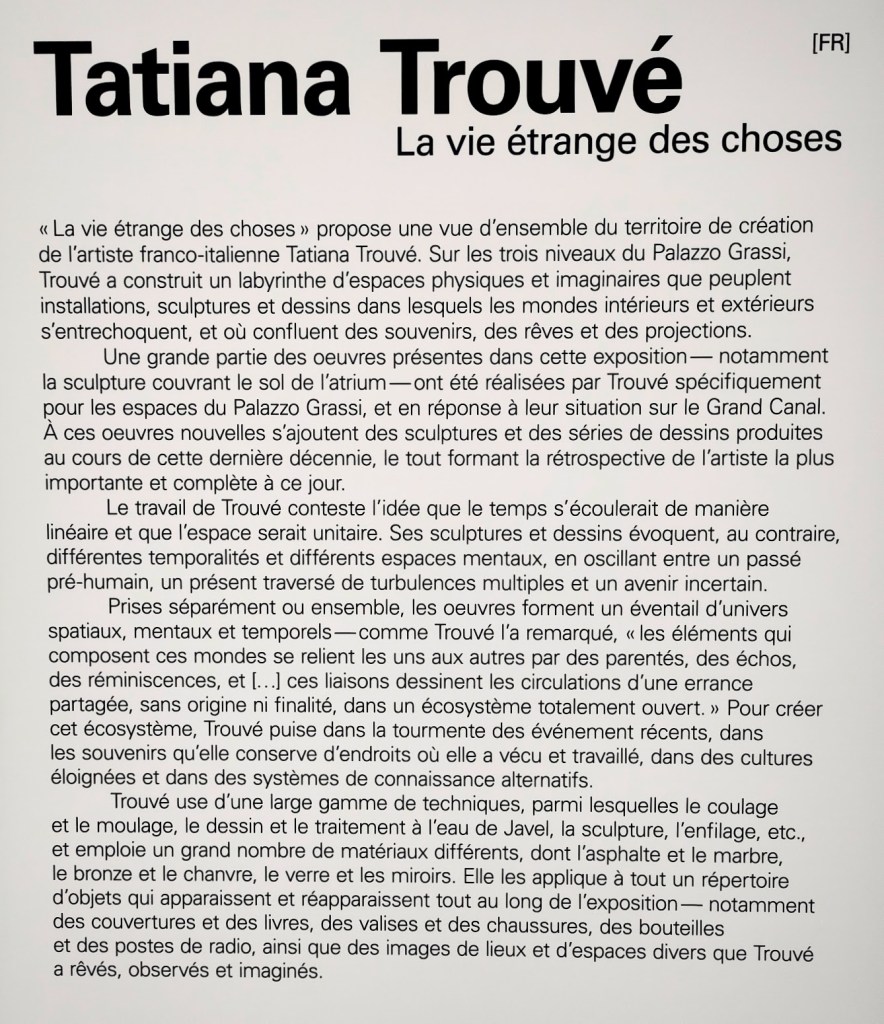 L’aventure a été assez longue car c’est une exposition que j’ai mis deux ans à préparer, avec 80 % d’œuvres nouvelles réalisées pour le Palazzo Grassi, mais aussi conçues dans le contexte de Venise, de l’eau, du mouvement de l’eau ». Tatiana Trouvé