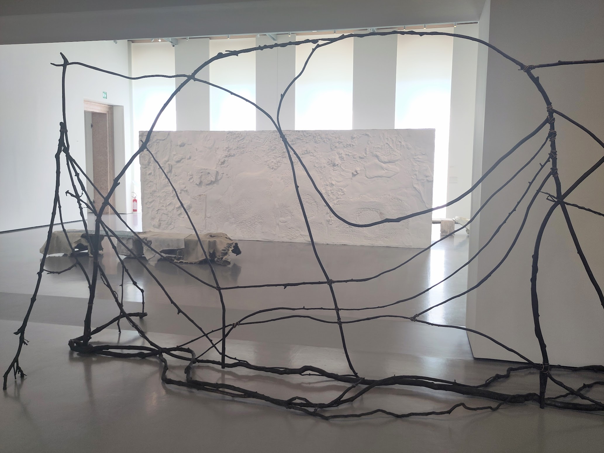 Une installation composée de moulages en plâtre formant des murs est une réminiscence des émeutes ayant eu lieu à Montreuil en 2023 (suite à la mort d’un jeune d’origine maghrébine tué par un policier). L’artiste a voulu enregistrer ces restes, les imprimer comme une mémoire tangible.