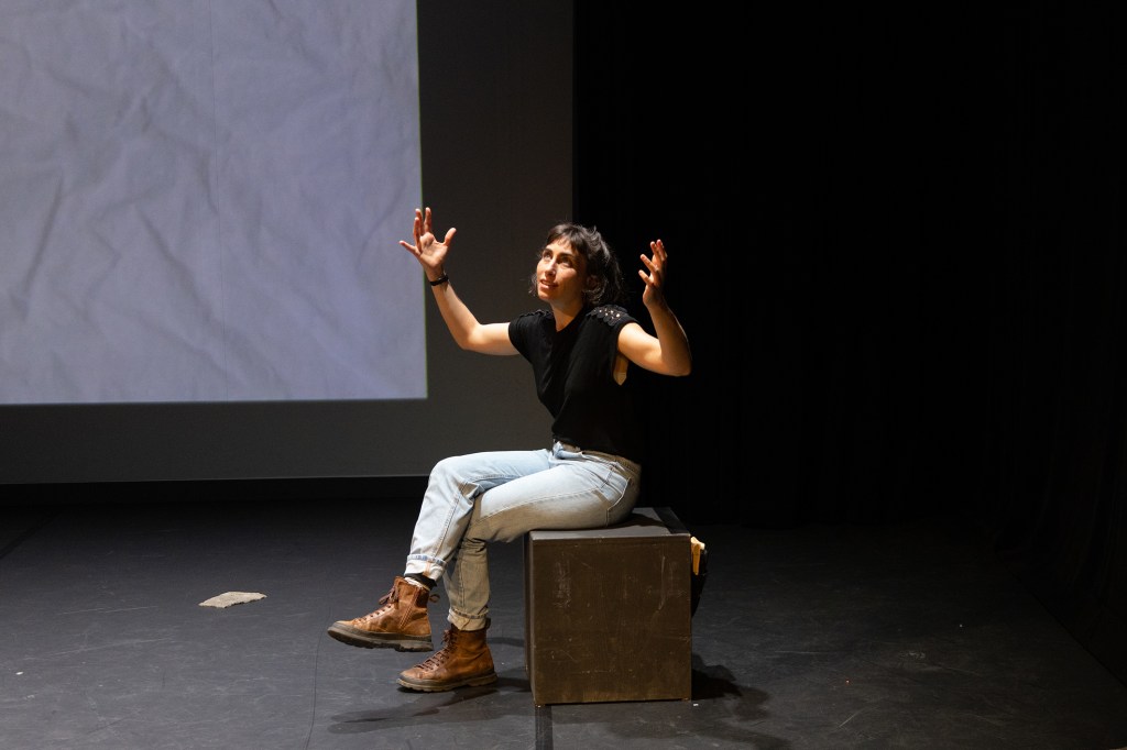 Le nom de Simon Senn évoquait pour moi la technologie numérique. Pour cette pièce, c’est avec une biologiste qu’il a travaillé ce spectacle seule-en-scène. Amaranta Fontcuberta, pour sa thèse de doctorat en écologie évolutive, a investigué sur la coexistence de deux formes sociales alternatives chez la fourmi alpine argentée et leurs colonies monogyne et polygyne. Le site de Derborence est célèbre grâce au roman (1934) de l’écrivain suisse Charles Ferdinand Ramuz , inspiré de l’éboulement survenu en 1714. C’est là que la scientifique a situé ses recherches.