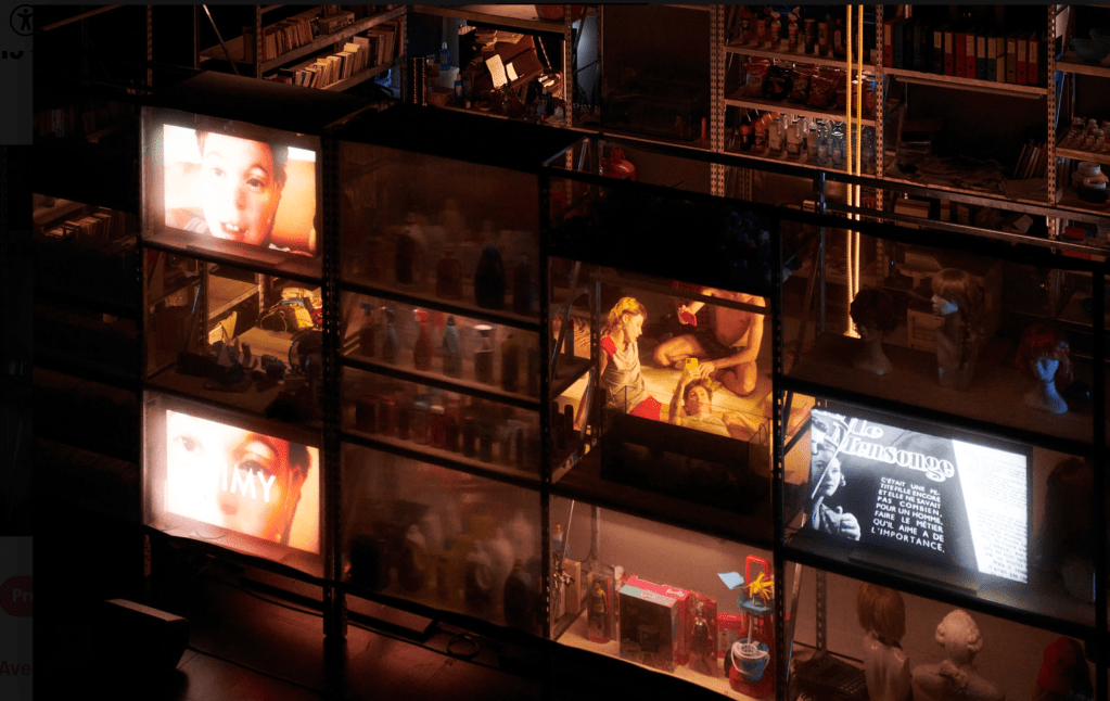 Malgré ce remarquable travail, je n’ai pu m’empêcher de regretter un peu de n’avoir eu que très peu accès visuel aux comédien.x.nes en train de jouer. Iels sont évidemment visibles sur écran, et on les aperçoit au travers de la gaze et des étagères…mais c’est seulement lors du final qu’iels apparaissent entièrement. Mais bon, je chipote.
