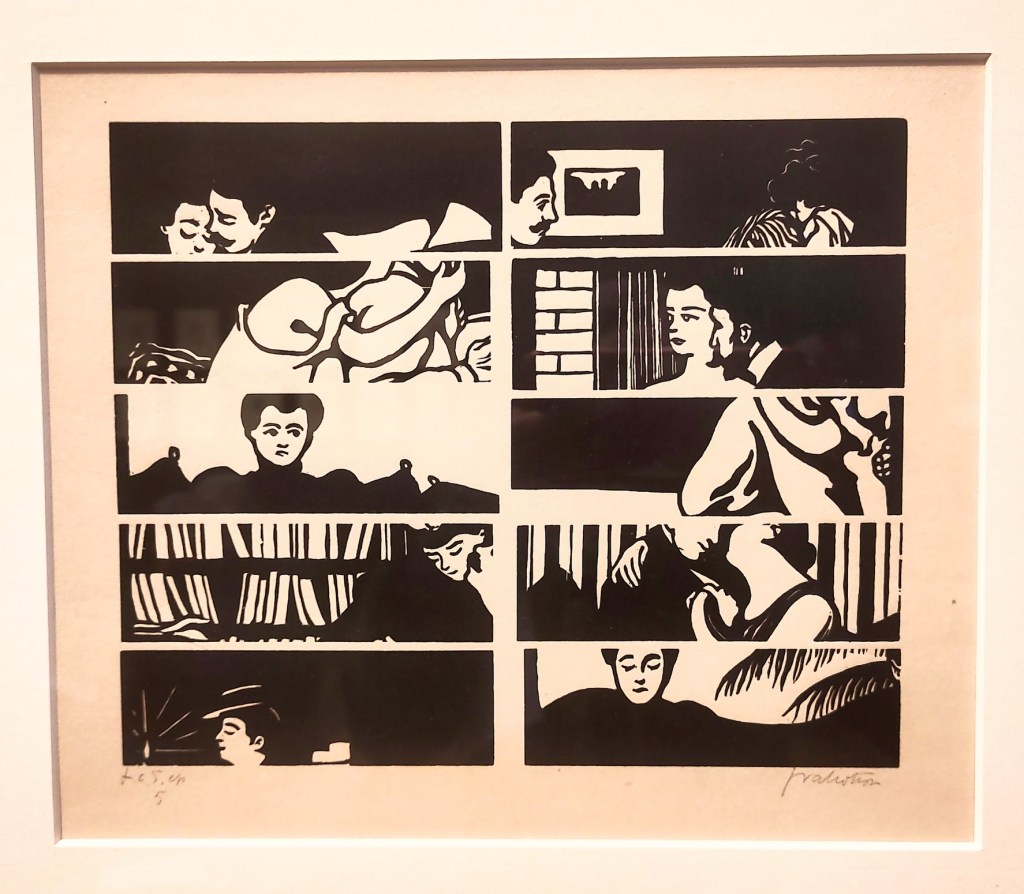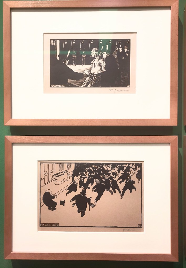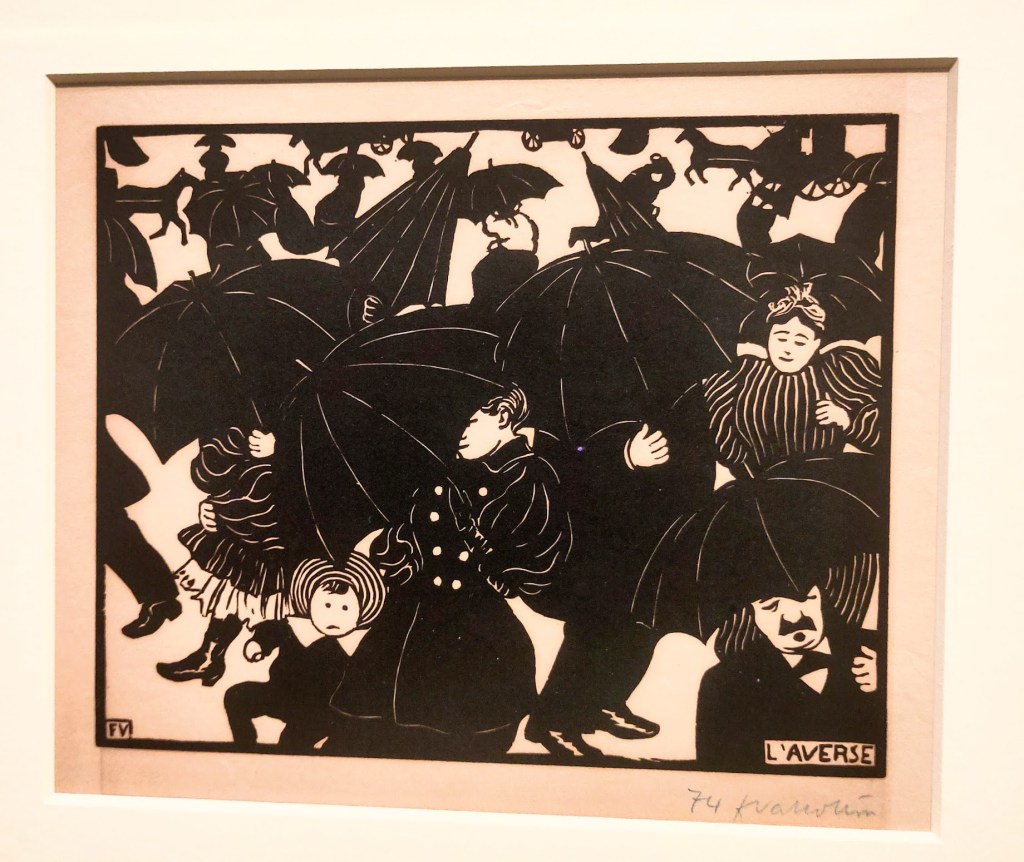 Période marquant l’intervalle entre héritage classique et désir de renouveau, la fin du XIXe semble caractéristique d’un génération d’artiste d’un « monde flottant« . Pour le parcours de Vallotton, la découverte de l’art japonais, relaté par plusieurs expositions à cette époque, semble importante. C’est là qu’il y rencontre la technique de la gravure sur bois. Peut-être est-ce aussi une influence pour ses fonds et ses vides? Il n’en est pas fait mention dans l’exposition.