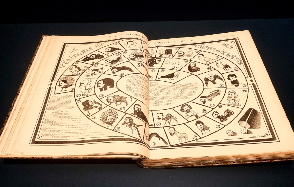 …Pour un hebdomadaire, il crée un jeu de l’oie où les parlementaires sont des « masques » et les corps des animaux. Ses petits portraits (ses masques) de figures littéraires ou artistiques à l’encre de chine (plus de 300) sont réunis dans deux volumes (Le Livre des masques, Remy de Gourmont, 1895-98). Ce ne sont pas des caricatures, mais des copies épurées, stylisées d’après photos, modèles ou dessins de confrères.