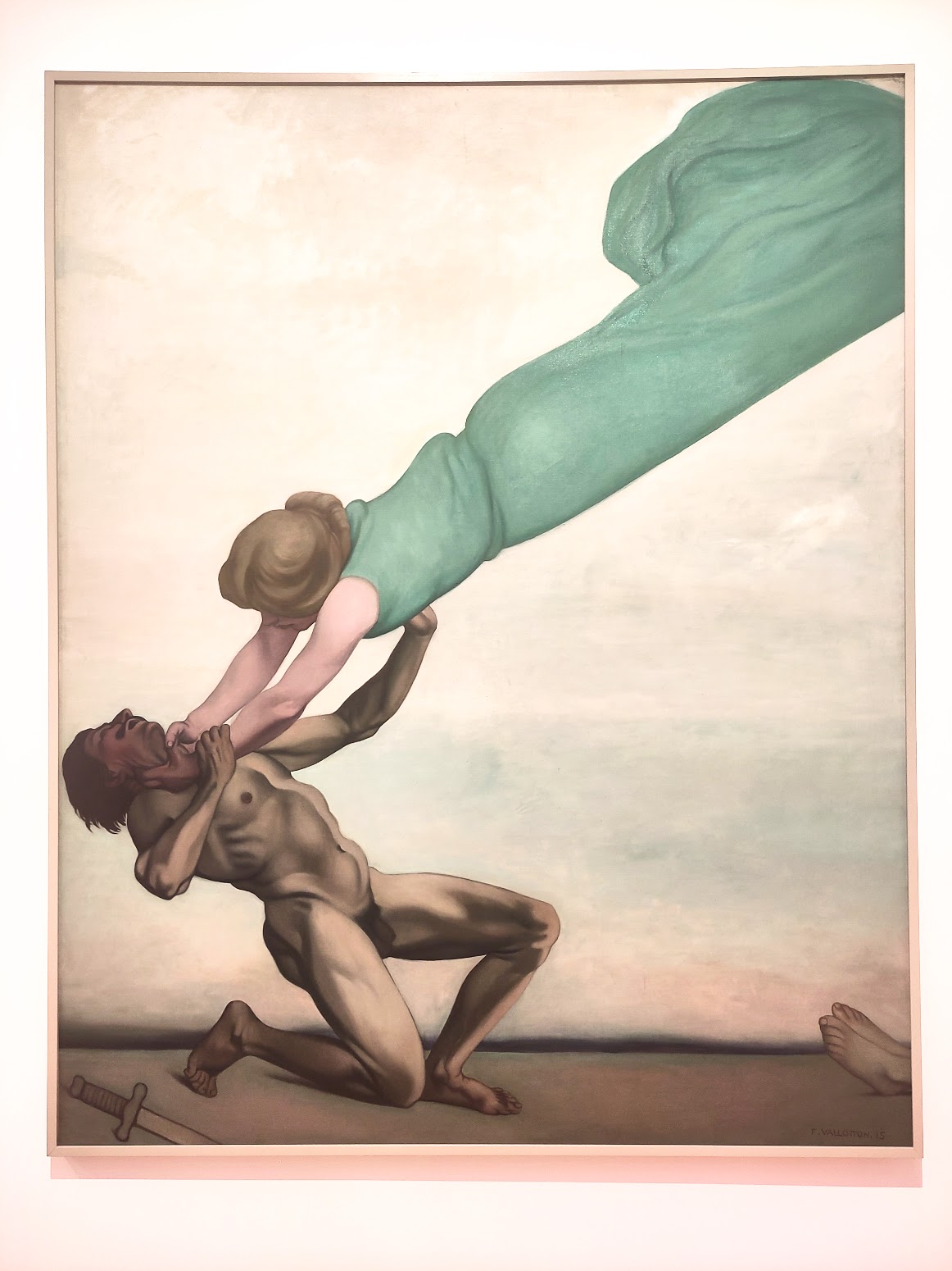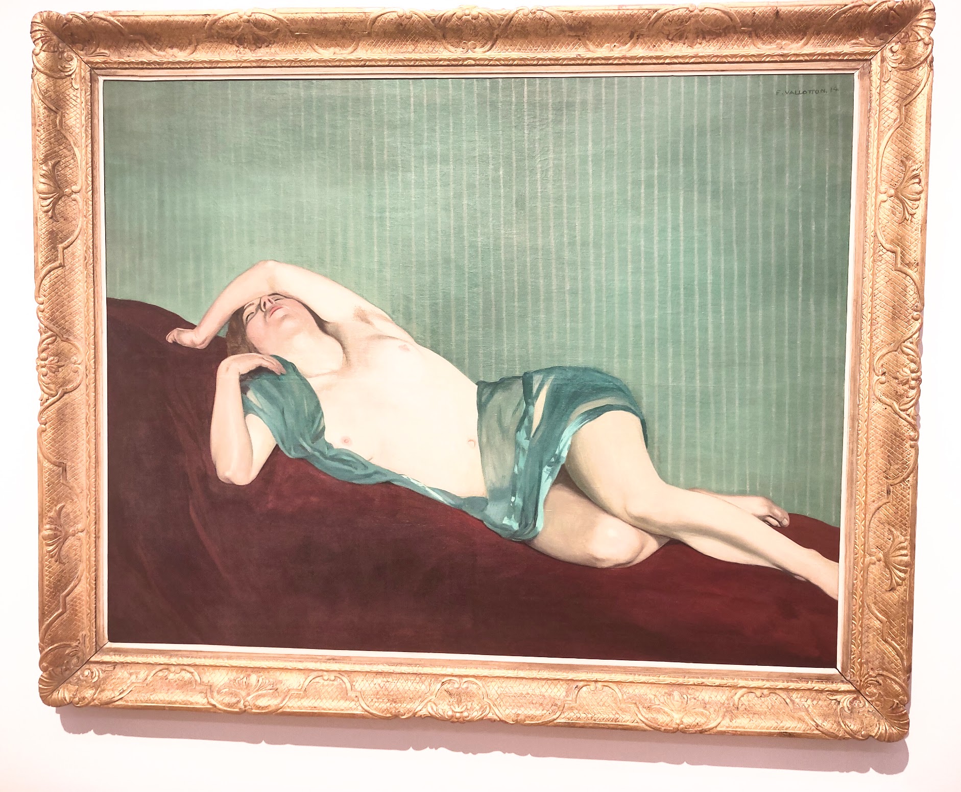 Une pose ambigüe entre pudeur et exhibition. Le genre « Vénus endormie » a été peint et repeint depuis la Renaissance. Vallotton le réalise avec une superbe palette de verts. Un fantasme plutôt masculin où la femme est passive. Ci-dessous, il n’hésite pas à la rendre activement agressive!