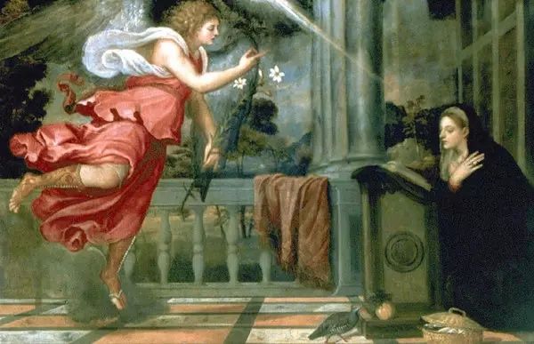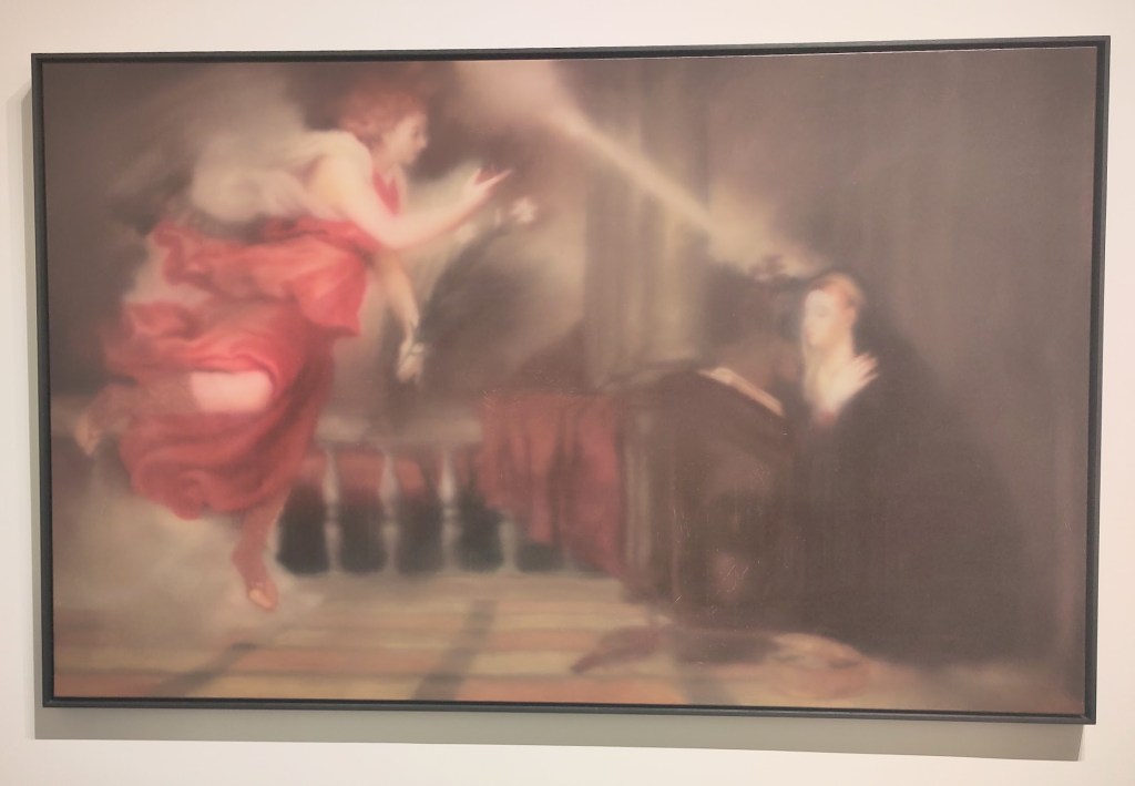 « L’annonciation d’après le Titien » est un ensemble de cinq tableaux où Richter réalise sa propre version d’après une carte postale. Il en exécute cinq versions dissolvant peu à peu le sujet dans un flou presque mouvant en conservant les couleurs à leur place originelle. Le tableau prend alors l’aspect d’une abstraction, ne faisant plus que suggérer l’esprit de l’original. Sublimation, extraction de la substance.