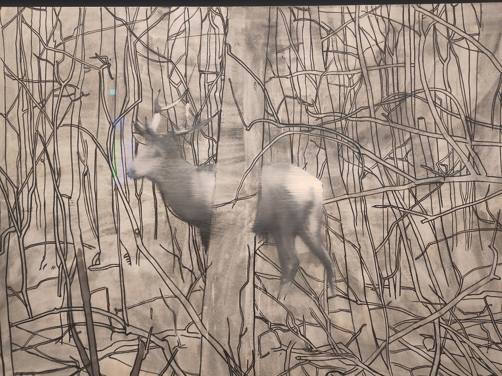 Ce cerf est peint d’après une photo que Richter à prise juste avant son départ pour l’Allemagne de l’Ouest. C’est l’une des premières photo-peintures, lesquelles furent réalisées durant toute la décennie 1960. Le floutage, qu’il utilisera abondamment, peut être une façon de représenter la fugacité de la mémoire, une mise à distance, un mouvement ou encore le temps représenté.