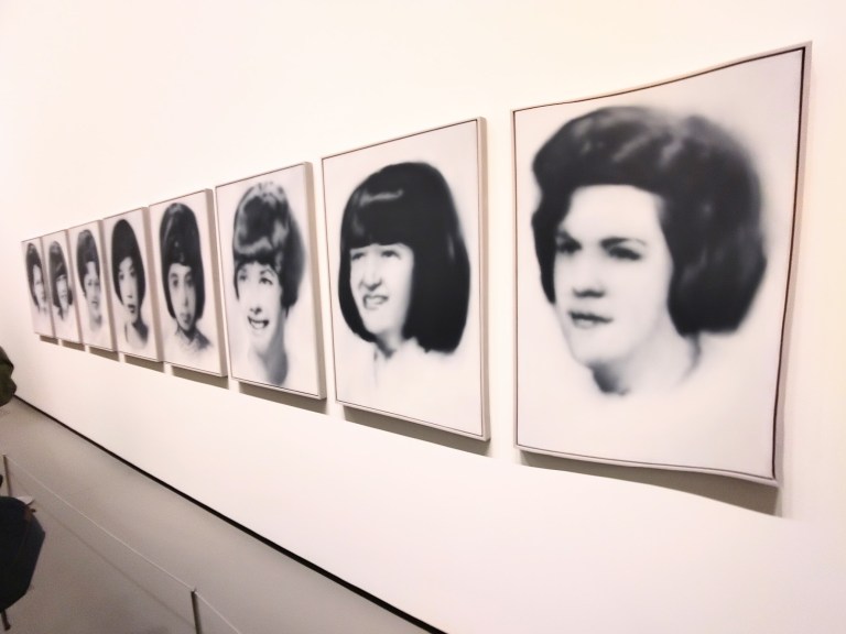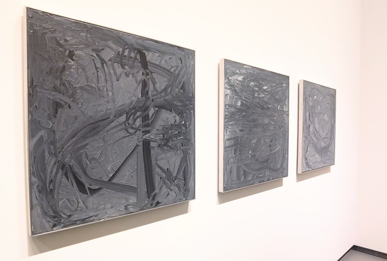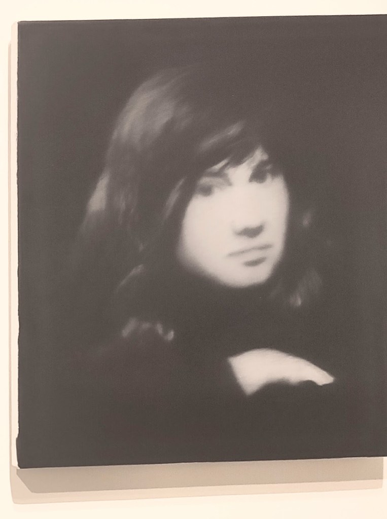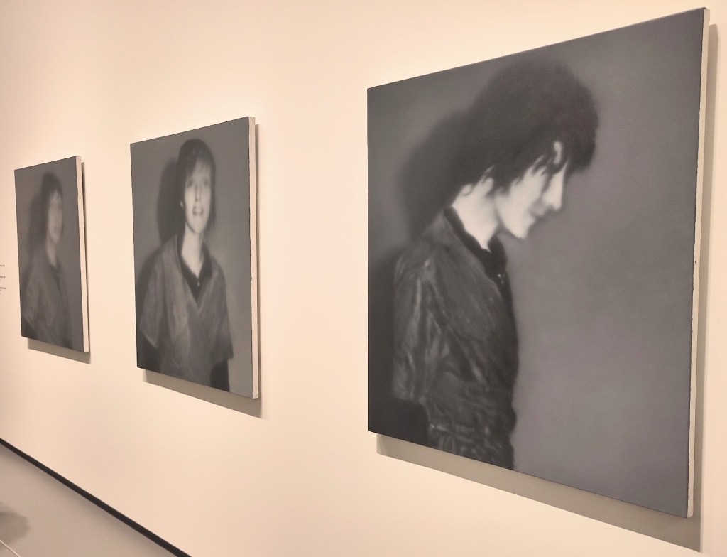 Trois portraits de Betty, la fille de l’artiste à onze ans. La première horizontale le représente allongée, la deuxième est floutée et verticalisée, la troisième a été produite dix ans plus tard d’après un cliché de jeunesse alors que sa fille a la vingtaine. Elle se détourne du photographe (son père) pour regarder un de ses monochromes gris. Classique et moderne à la fois (monochrome minimaliste + portrait de facture classique dans une pose inhabituelle).