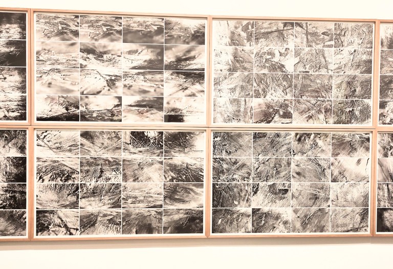La série Birkenau montre ces quatre célèbres photographies prises clandestinement dans le camp par un membre, soutenu par d’autres, du Sonderkommando. Pour son témoignage, Richter les a agrandies et reportées sur toile pour ensuite, « par honte, par pitié ou sentiment religieux« , a choisi de les recouvrir. Les quatre toiles abstraites qui en résultent font face à quatre plaques de verre grises les reflétant en miroir, comme une mise en garde actuelle ou la possibilité d’une répétition.