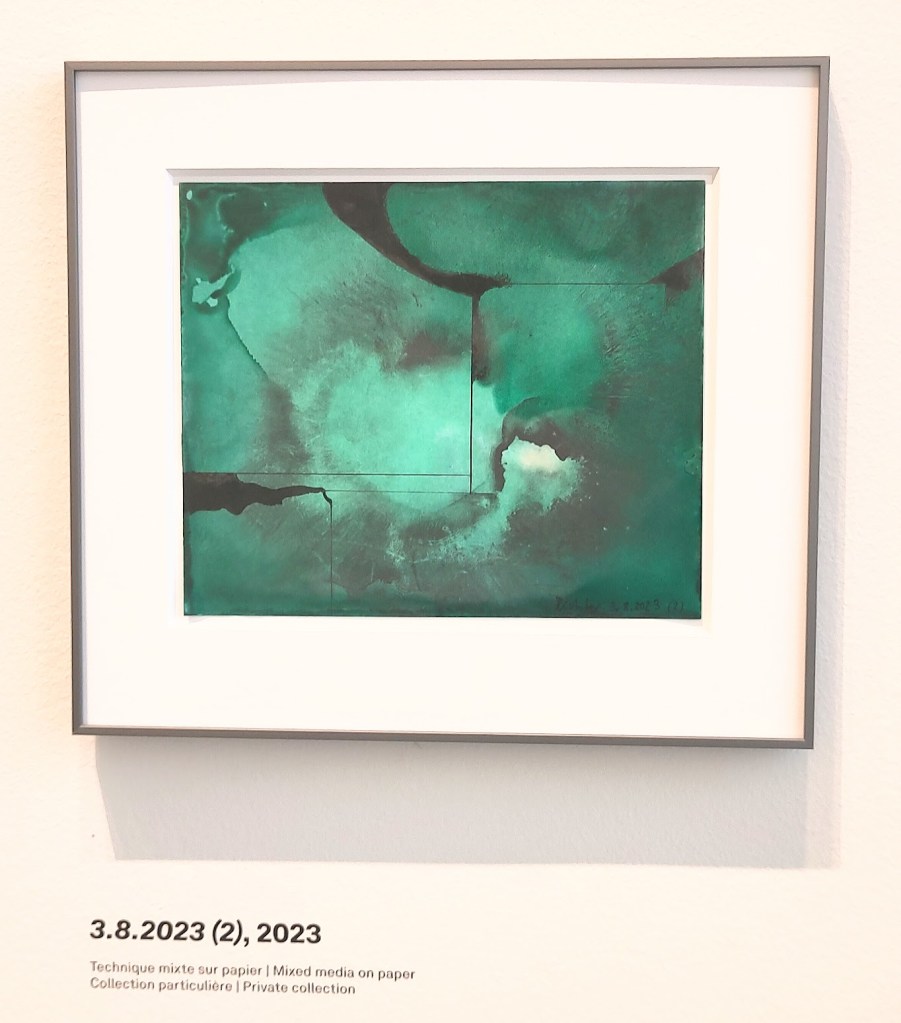 Parmi une série d’abstractions de petits formats, j’en relève une que j’ai trouvée envoûtante. Une aquarelle sur papier aux côtés de laquelle je pourrais vivre sans m’en lasser, je pense.