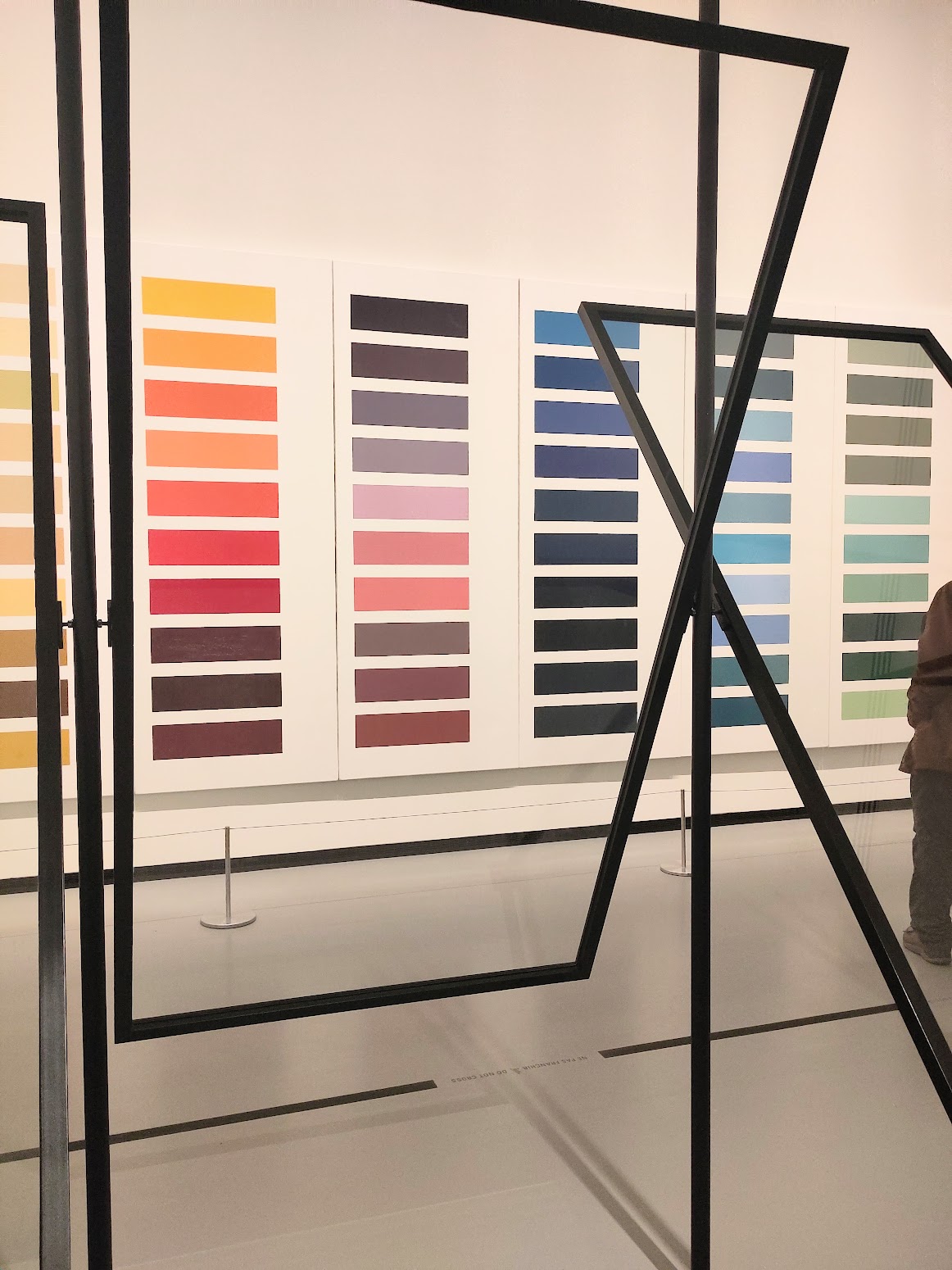 Les premiers panneaux de verre débarquent en 1967. Quatre plaques transparentes inclinables où le reflet joue avec la transparence. Un effet qu’il expérimente avec des miroirs d’angle colorés, puis des plaques transparentes superposées, des monochromes miroirs et enfin de simples miroirs agissant directement sur les regardeur.euses, sans manipulation, des readymade, dont une installation inspirée par John Cage, « 11 Scheiben », 2004. John Cage qu’il admire pour son jeu avec le hasard et dont il a assisté à une performance Fluxus à Düsseldorf (1963). Nul besoin de préciser qui cela m’évoque…