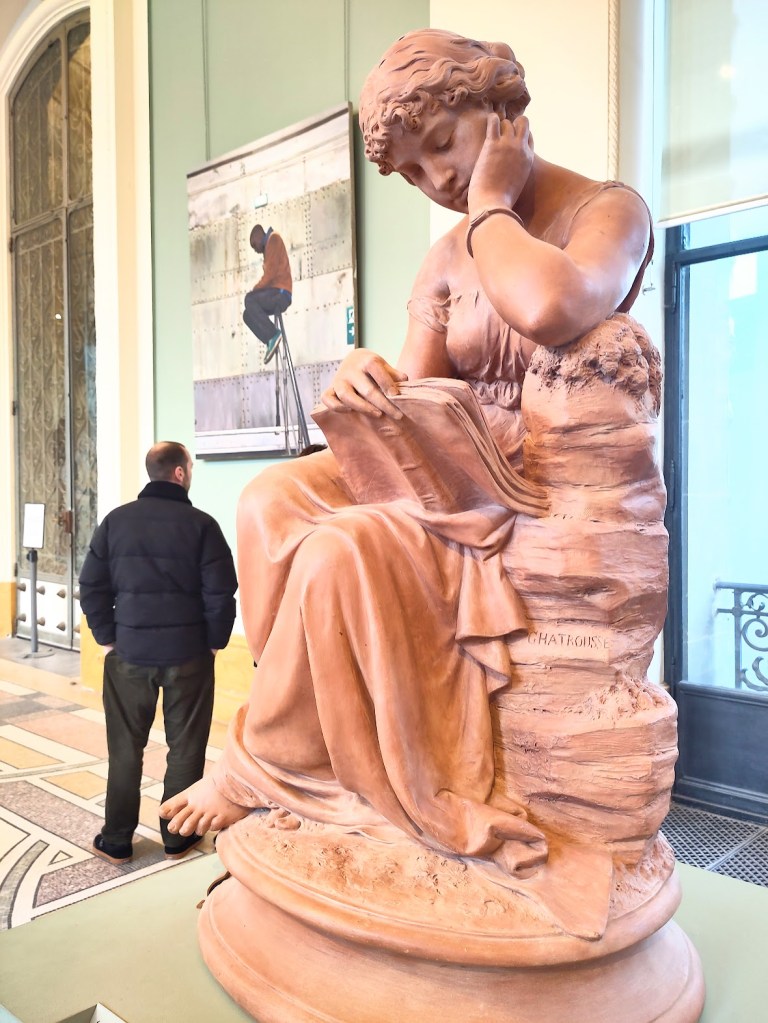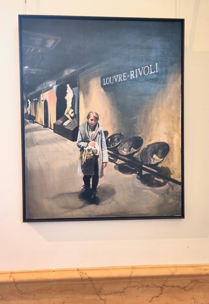Une jeune femme mélancolique et fatiguée sur le quai du métro Louvre-Rivoli. Derrière elle l’Esclave mourant de Michel-Ange et la Vénus de Milo. Tout est dit, non?