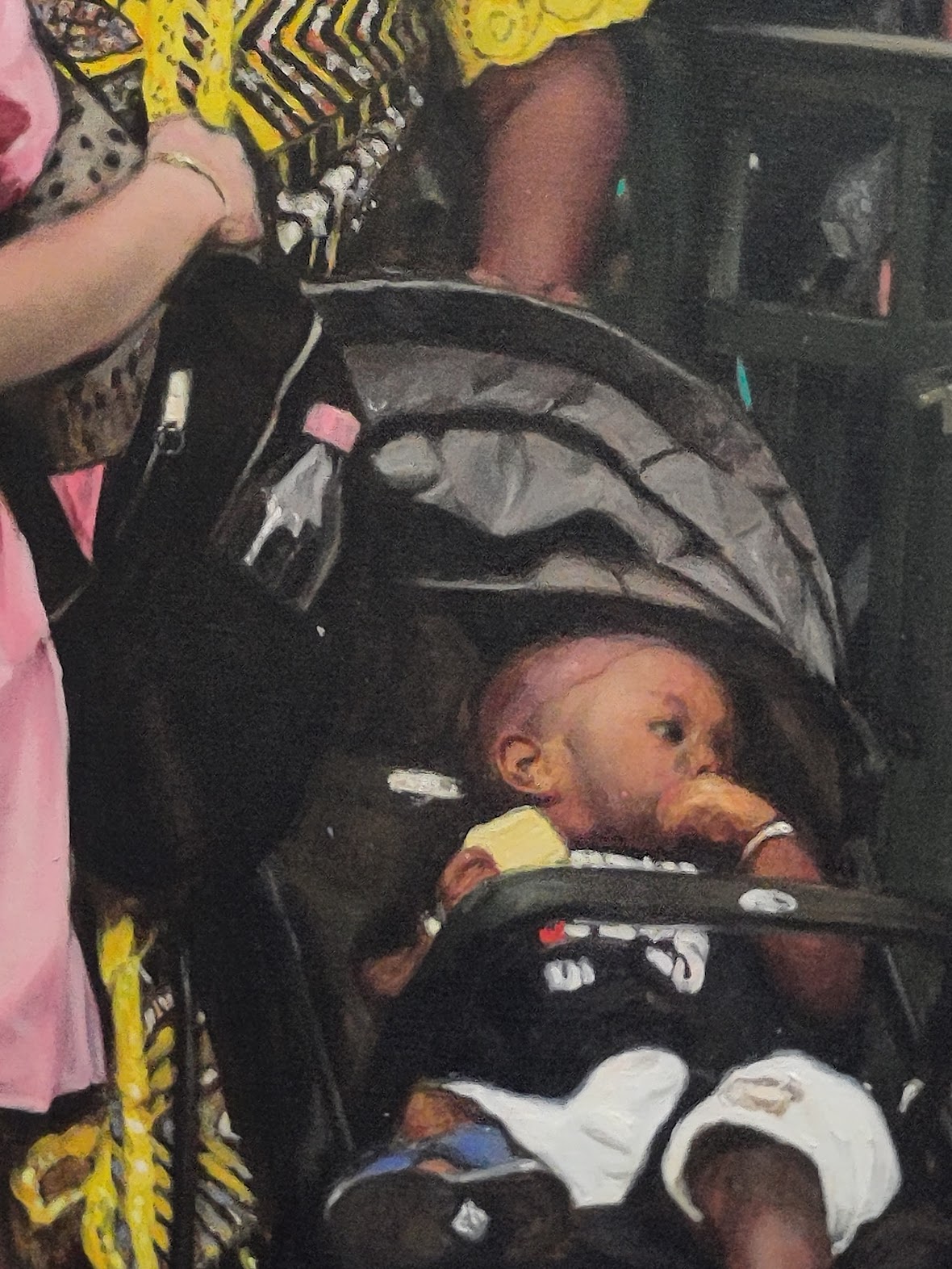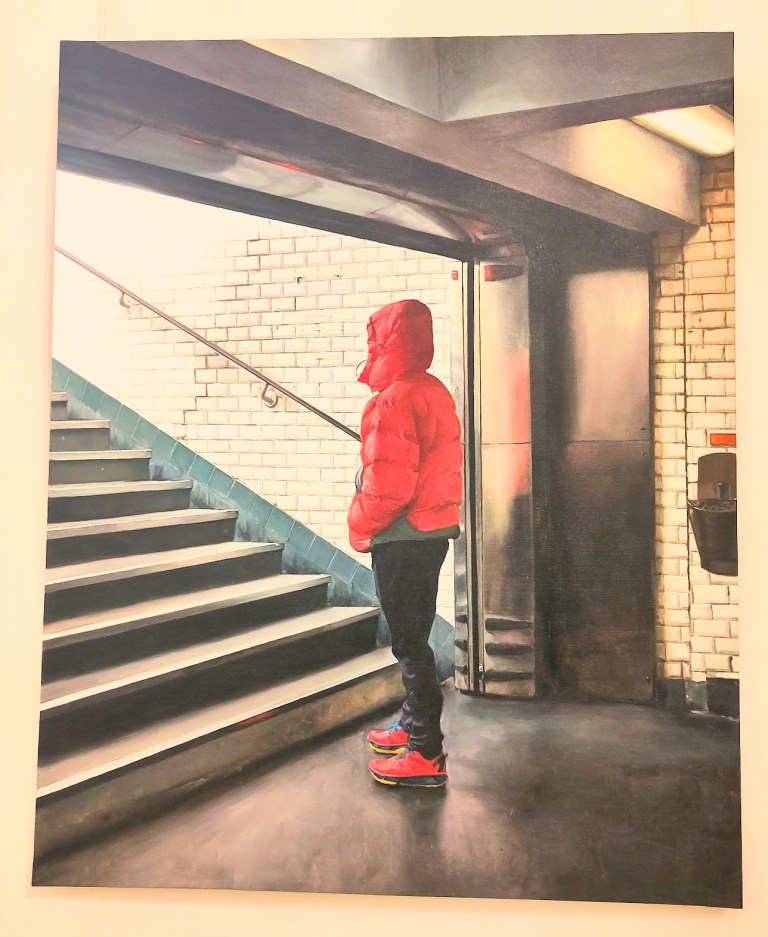 L’artiste travaille d’après des photographies éparses qu’il a prises avec son téléphone. Il travaille la lumière et l’intensité produite par les foules, mais aussi les solitudes parmi la disparité urbaine.