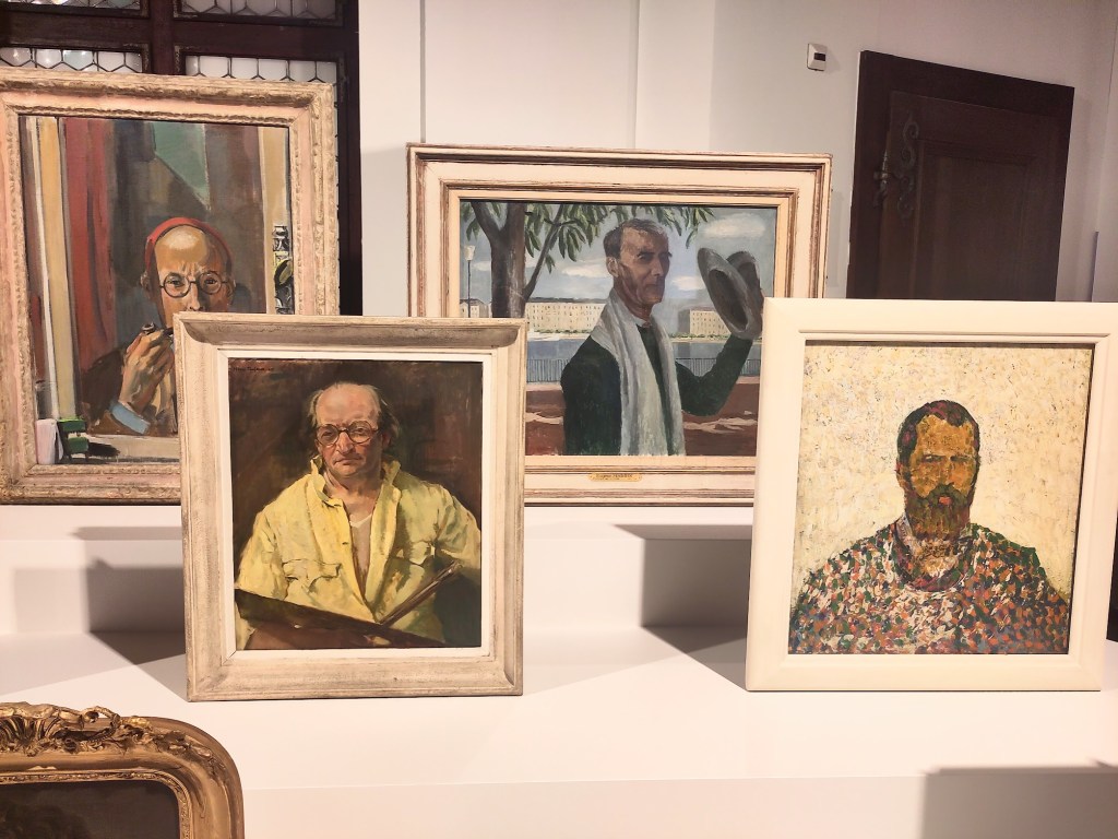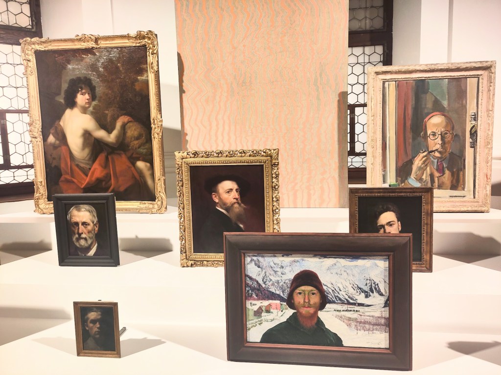 Une salle impressionnante de significations… Les anciens convoqués par leur présence, leur regard, leur expérience, à faire face à la contemporanéité de l’art. Pas de jugement, mais une constatation. Les autoportraits des maîtres anciens sont tirés de la collection du musée.
