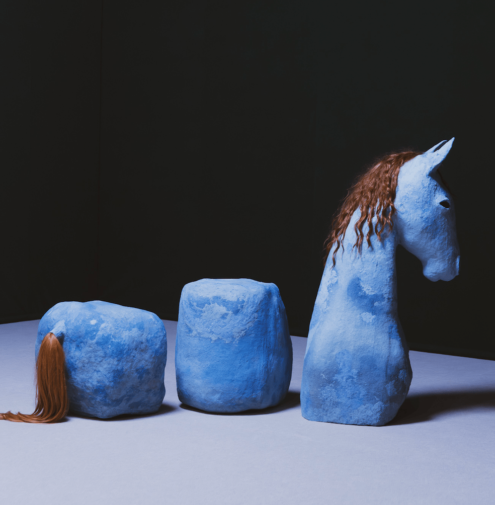 C’est un cheval. Il est bleu. Il peint. Enfin… sa présence peint des tableaux, des tableaux vivants et même des tableaux qui parlent. Personne ne l’enfourche, pas de cavalier bleu sur ce cheval de trois morceaux. Chacune de ses parties en est son propre chef. Quelquefois mélangées, tourneboulées, hésitantes ou hardies, elles expriment leur liberté, leur indépendance.